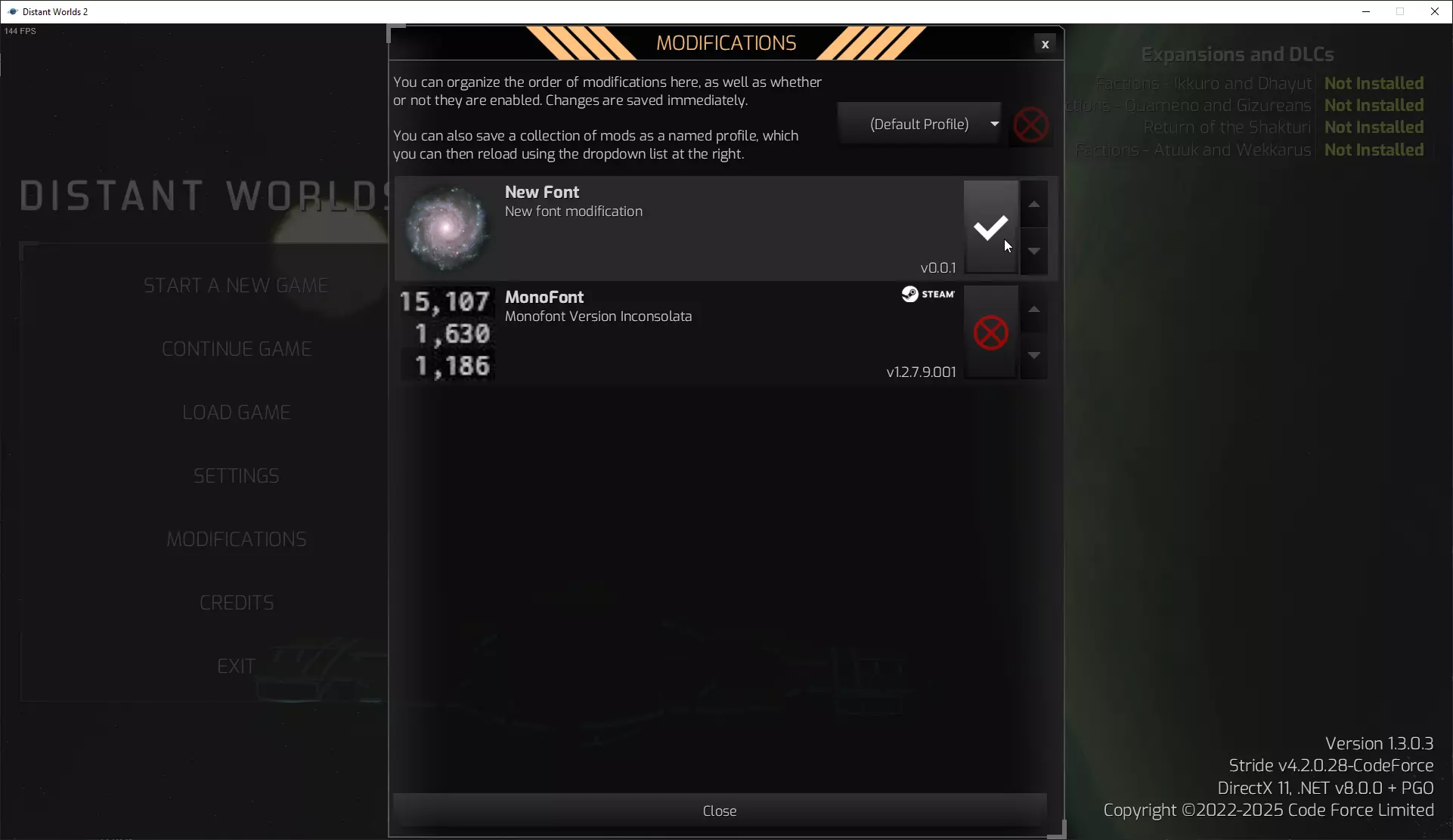 在游戏中激活你的模组,然后重启游戏使更改生效。