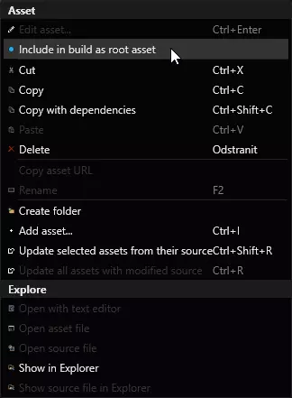 现在选择所有精灵资源并右键点击它们。从上下文菜单中,选择【作为根资源包含在构建中】,这样资源图标就会亮起蓝色或绿色。