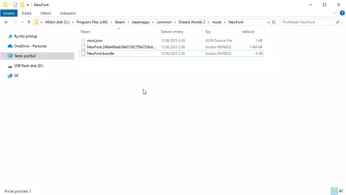 6. 在游戏中使用字体 生成的字体仅可作为模组使用。 若要以其他方式加载字体,你需要对其进行略微不同的生成处理。这种情况下,建议你查阅官方字体生成指南以获取更详细的说明。 如果游戏文件夹中没有【mods】目录,请创建一个。在该目录内,为你的字体创建一个文件夹,例如【NewFont】。在这个文件夹中,你需要创建一个名为【mod.json】的文件,其内容可能如下: { "displayName": "新字体", "shortDescription": "新字体模组", "previewImage": "", "version": "0.0.1", "bundles": ["NewFont.bundle"] } 不要忘记将生成的字体文件复制到你刚刚创建的文件夹中。