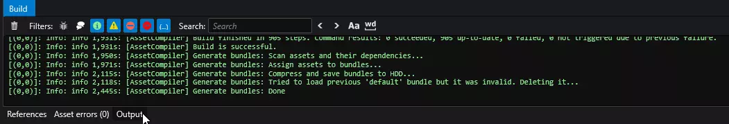 输出控制台应显示:生成捆绑包:完成。
