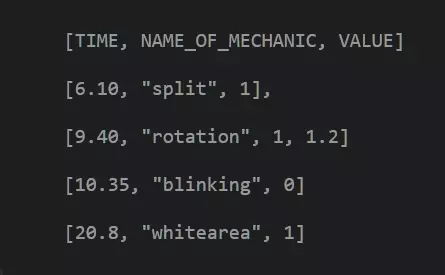 该行代码用于告知游戏在5.90秒时激活分离机制。你需要知道,【1】表示激活,【0】表示停用。激活/停用机制的命令结构非常相似: