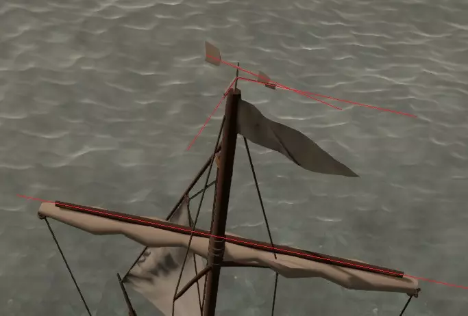 在图片中可以看到,风向标带有金属指针,用于指示主帆的最大旋转角度。结合金属风力指示器,能更轻松判断主帆是否能捕捉到风。这一设计非常实用,因为主帆的旋转过程十分缓慢。 倒航操作: 据我观察,目前只有艾斯特林船配备此类船帆,因此该操作仅适用于该船型。前帆配备两个缭绳绞盘。若将与帆相反方向的绞盘完全收紧,帆将产生反向推力而非正向推力。主帆在反向使用时也能实现这一效果,不过产生的推力相对较小。此操作仅在近迎风和横风航行位置有效。抢风转向 若将前帆对面的缭绳绞车收紧至接近角度,然后进行抢风转向,并对另一侧的绞车执行相同操作,即可无需进一步调整地来回抢风转向。