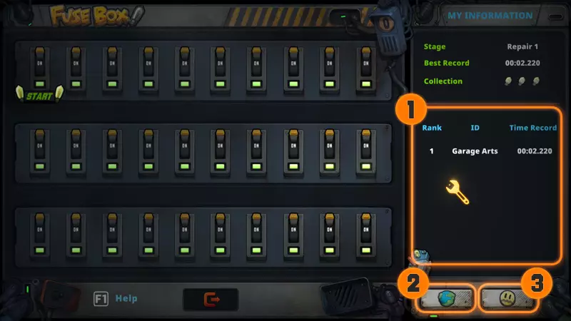 1. 选择1~3号关卡 - 每个关卡拥有不同难度 - 各关卡的最终获胜者会被记录 2. 选择武器 - 完成【Repair】和【Challenge】可获得【Get Weapon】成就 3. 完成【Repair】和【Challenge】后攻击力提升
