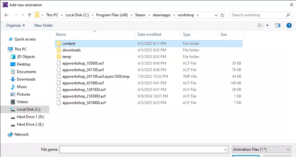 这将打开目录,但我们需要导航到创意工坊项目的下载位置。