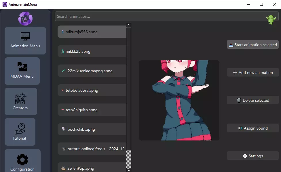接下来,启动Anima-engine,该程序加载时可能会让人有些困惑,之后必须在任务栏上打开它。只需右键点击图标,然后打开主菜单。