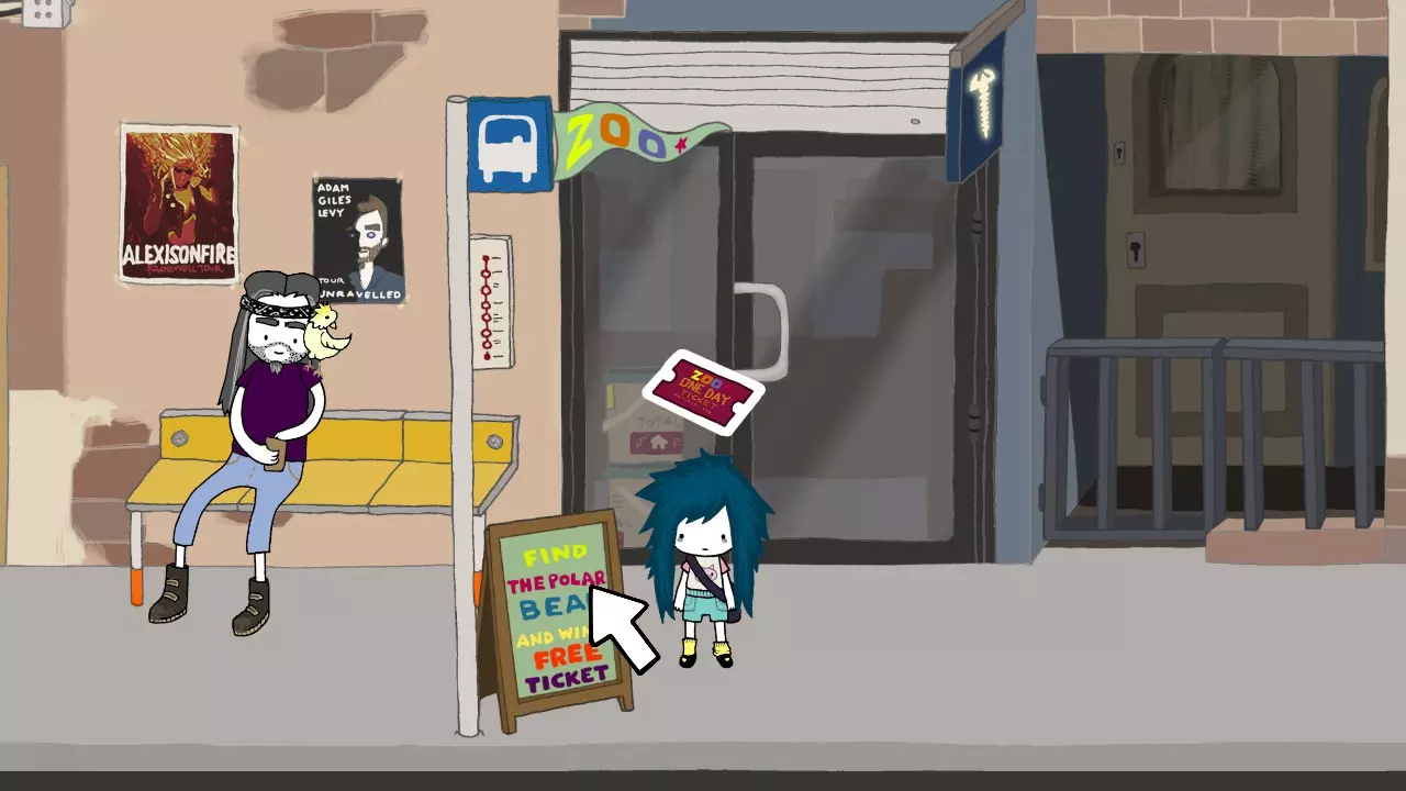 KHM 027 你获得了一张动物园门票。 向右走,在带有动物园标志的公交站停下。 将门票用在标志上。
