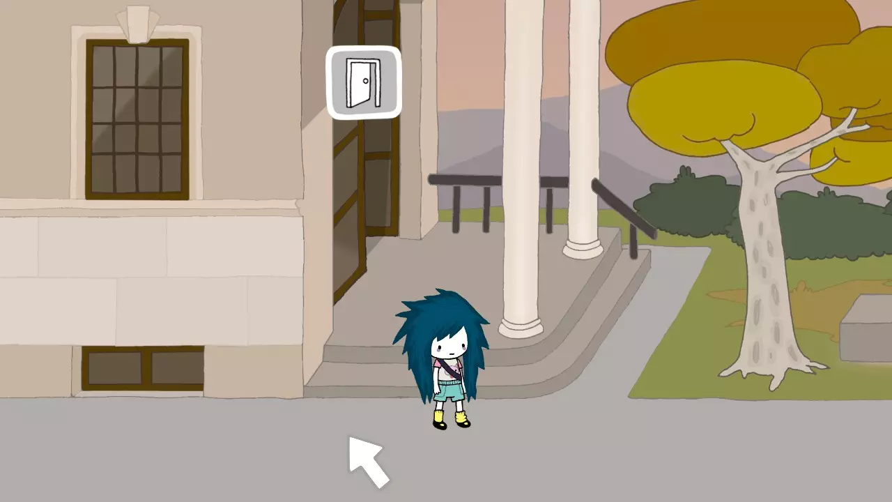 上楼和妮卡交谈。 我要让她帮我做一台汉堡机。 我还有事要做,她也得回去继续她的项目了。 离开房子。 向左走,在图书馆附近停下。