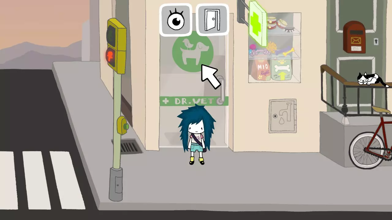 失眠DJ 你更换了汉堡吧的音乐。 和柜台后面的女孩交谈并听完所有对话。 离开餐厅。 攻略继续 向左走并检查兽医的门。