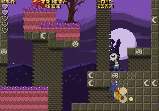 在第二个检查点之后,在冰面上有喷火鬼的场景开始处,你会发现这面破损的墙壁。用你喜欢的攻击方式打破它,就能到达另一边的美食女孩。她会为你的努力奖励你一份披萨。 南瓜谷
