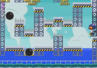 通过第二个检查点后,来到有炮弹的垂直区域时,你需要从右下角的假墙处跳过去,才能找到美食女孩。假墙以较深的色调为标志,在整个关卡中会出现几次。在附图中,你可以看到切尔西亚正指出假墙的确切位置。