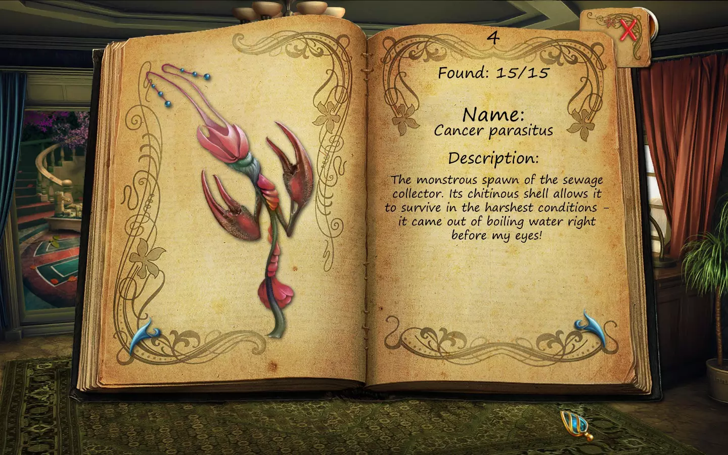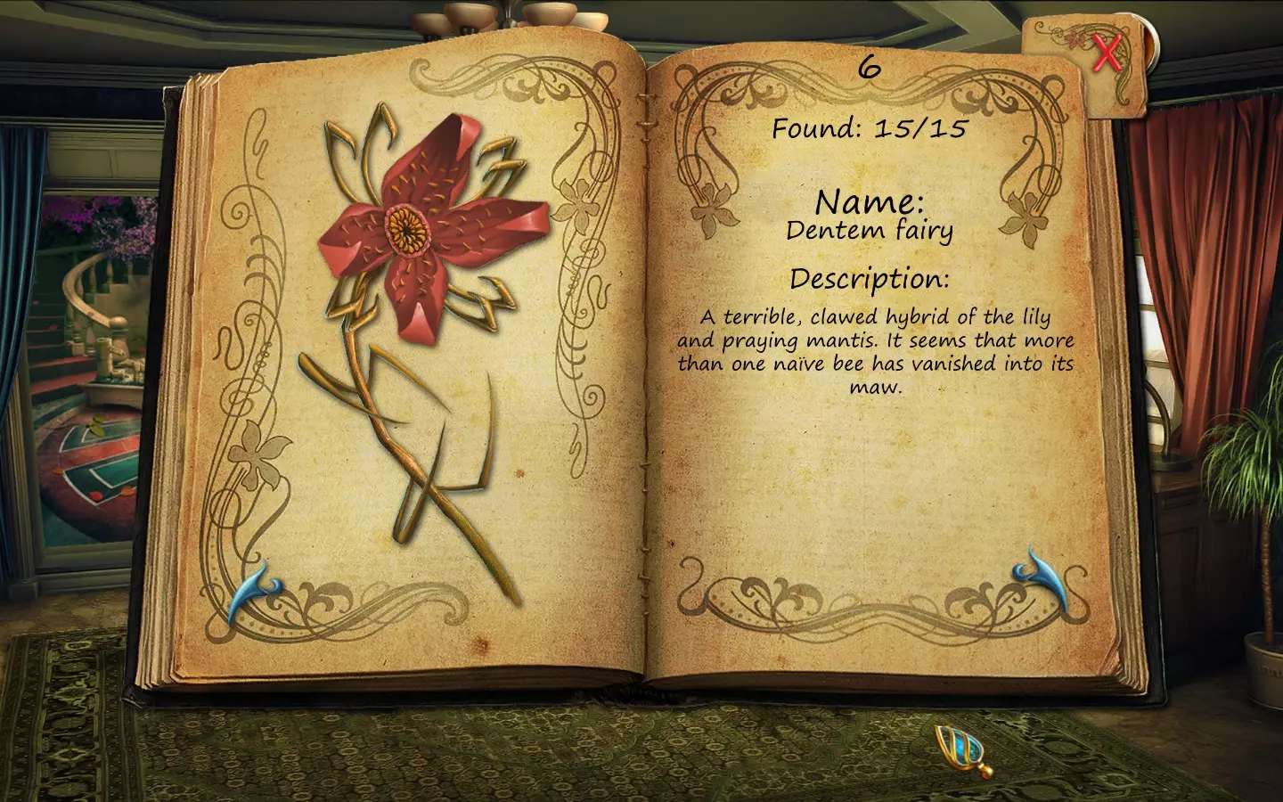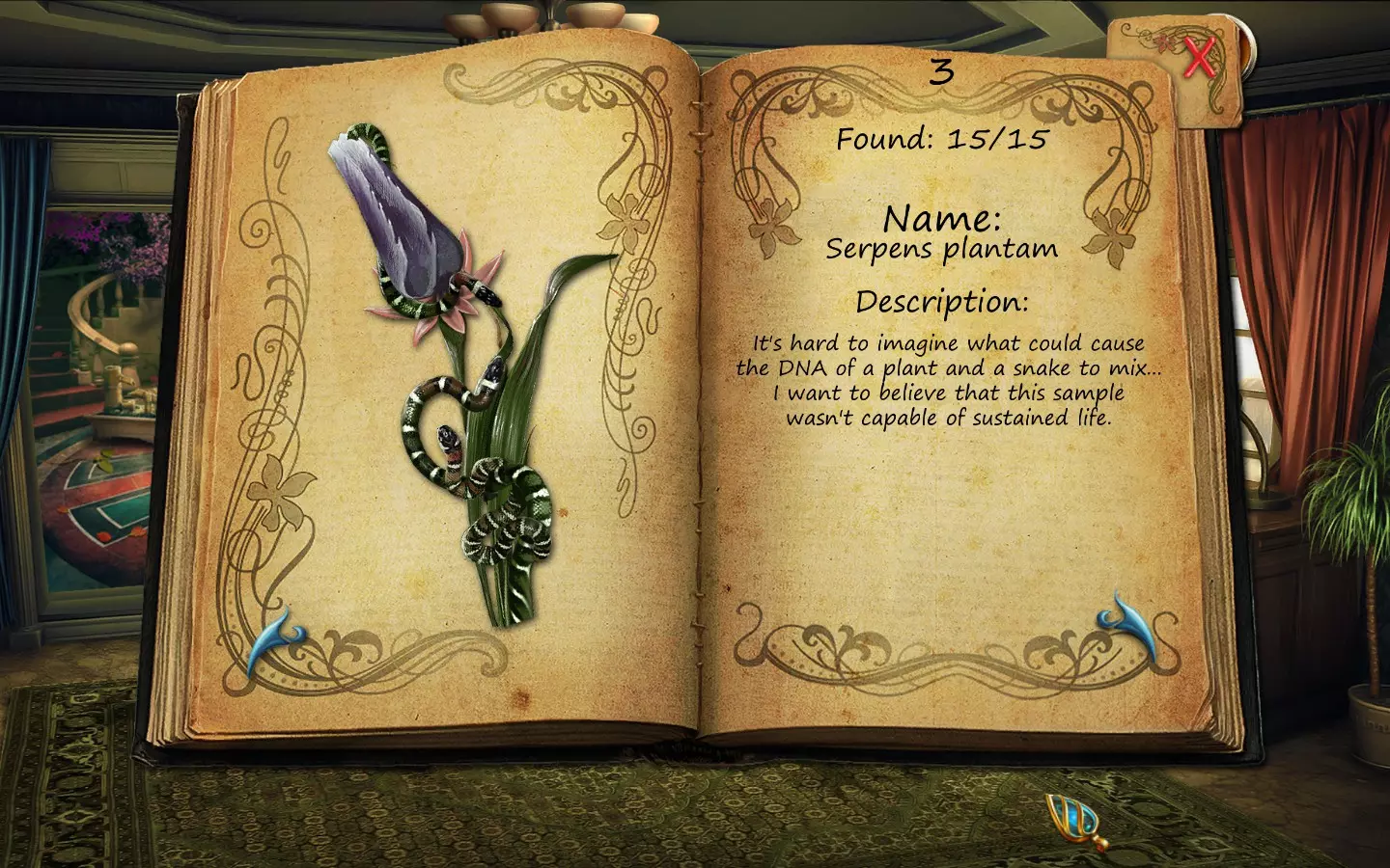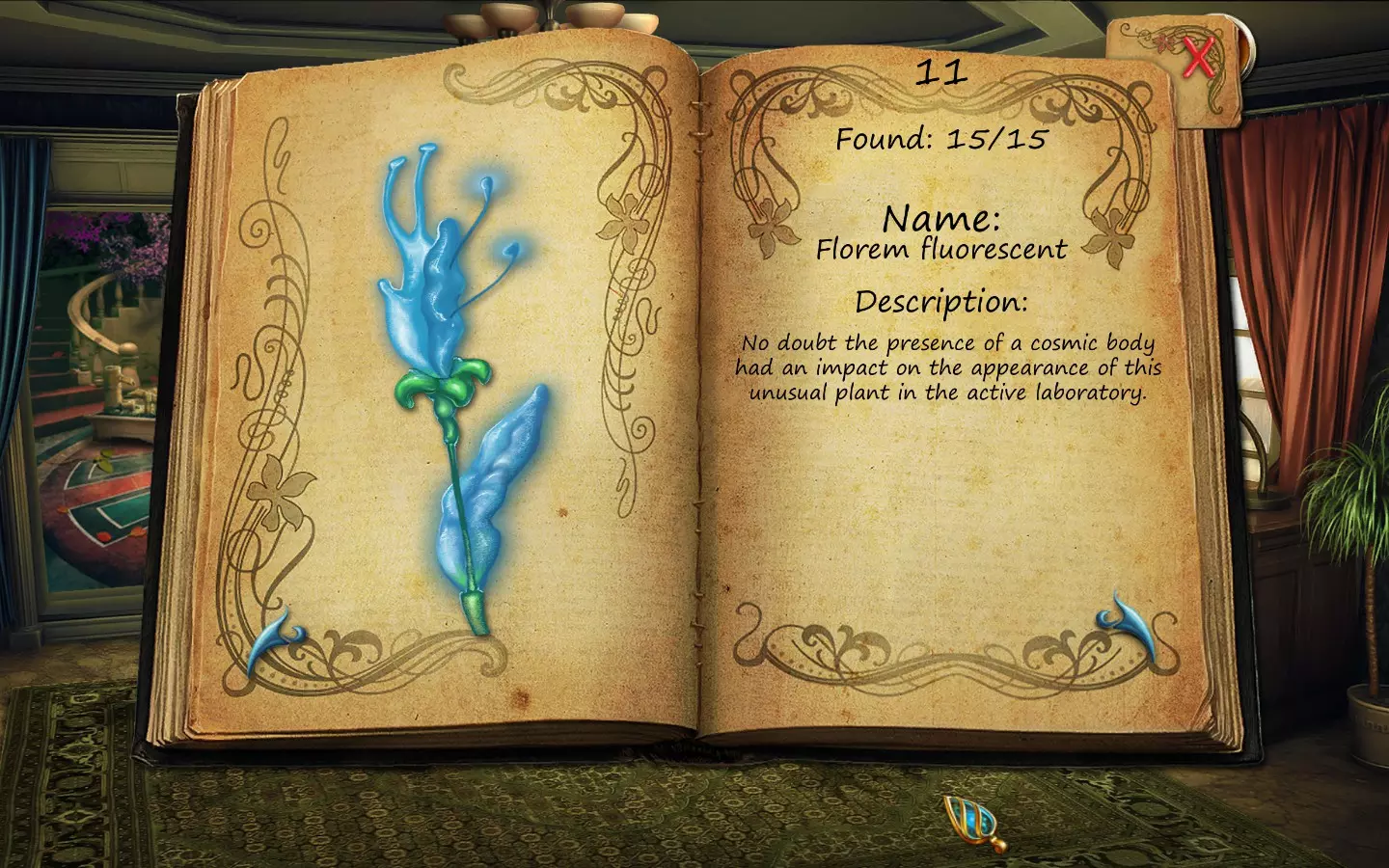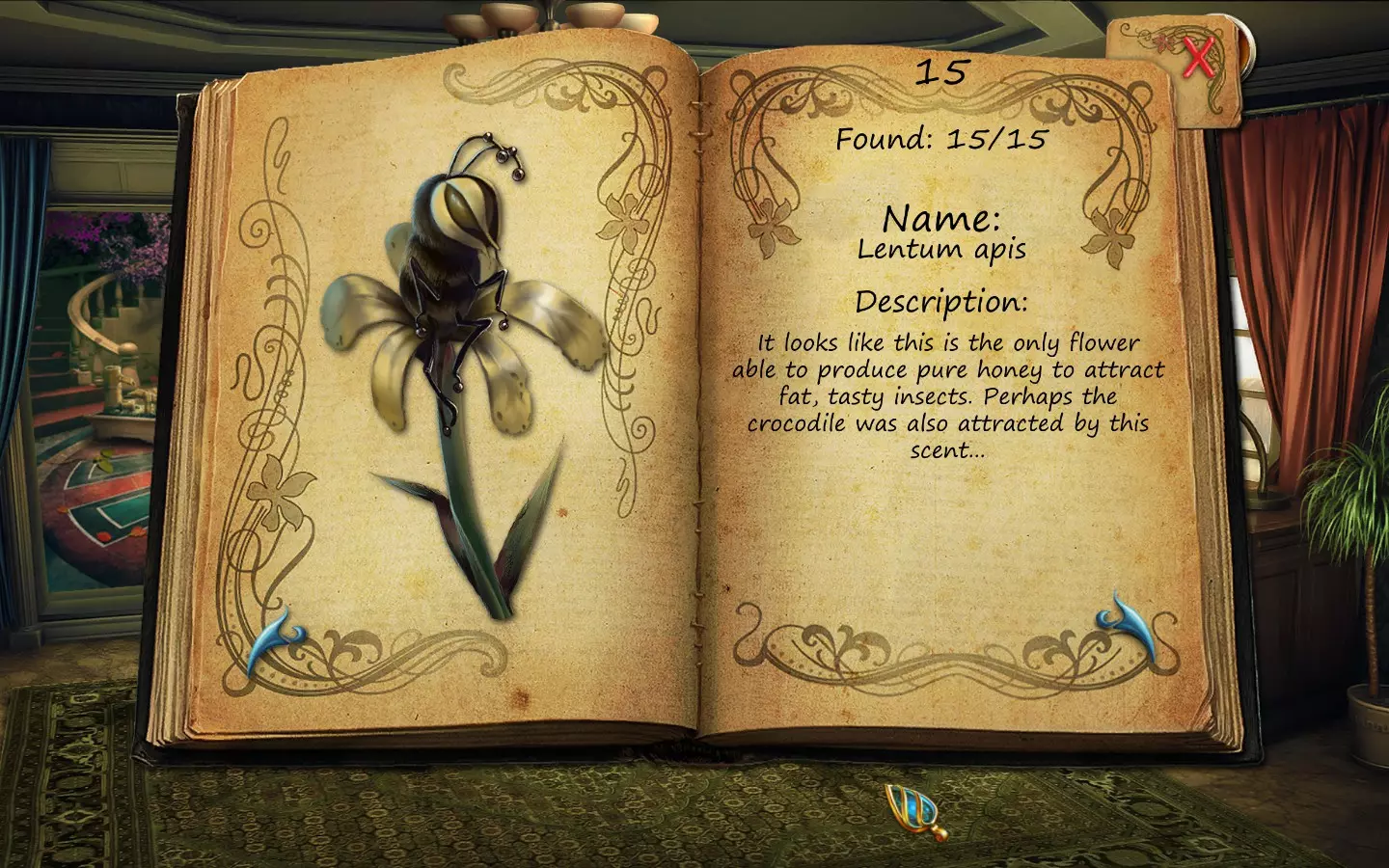 花朵(仅文字说明) 按获取顺序排列(含页码): 1. 花之眼 - 照相馆 2. 火焰花 - 废墟建筑 3. 蛇形植物 - 洗衣房 4. 寄生蟹花 - 下水道出口(需关闭水源) 5. 6. 齿牙仙子花 - 商店 7. 孔雀羽花 - 加油站 8. 机械颚花 - 地铁站 9. 催眠向日葵 - 古董店 10. 尖牙角花 - 车库 11. 荧光花 - 实验室 12. 隐形水蛭花 - 城市入口(首次访问时不可见,需稍后返回) 13. 鱿鱼兰花 - 废弃地铁站 14. 蝎爪花 - 实验室交叉路口 15. 迟缓蜂花 - 被淹没的公交车水晶之谜 - 教授办公室 注意:“隐形水蛭花”其实可以比列表中记录的时间更早获得,但这是我在最近一次游玩时记起来去查看它的时间。 花朵(含图片) 按获取顺序排列(附带页码)。在每张图片中寻找手形标记。 2. 火焰花 - 废墟建筑