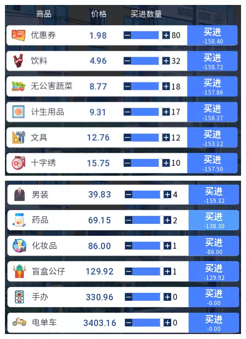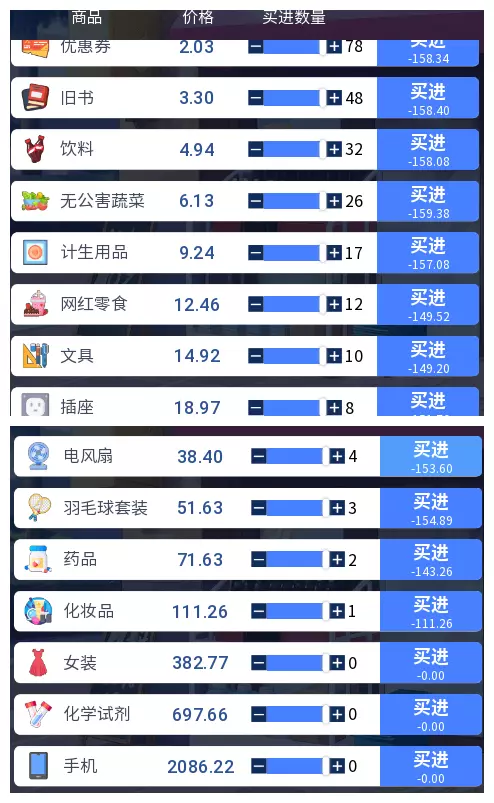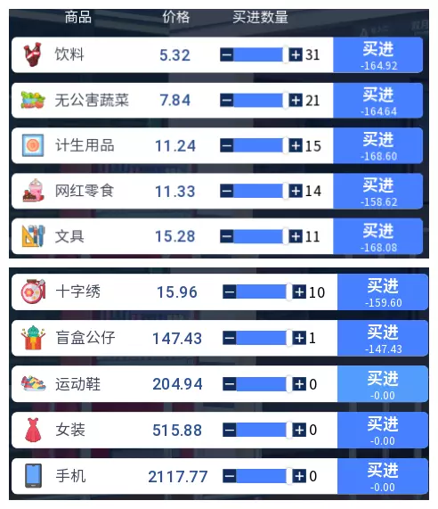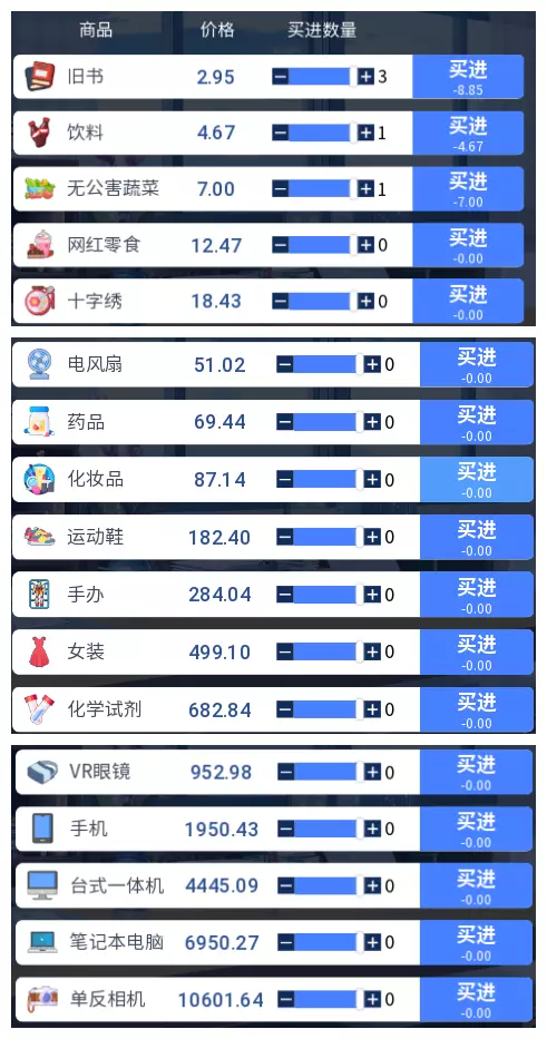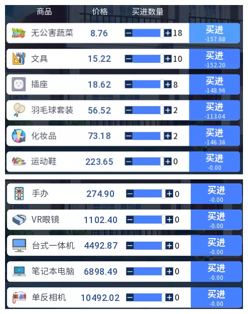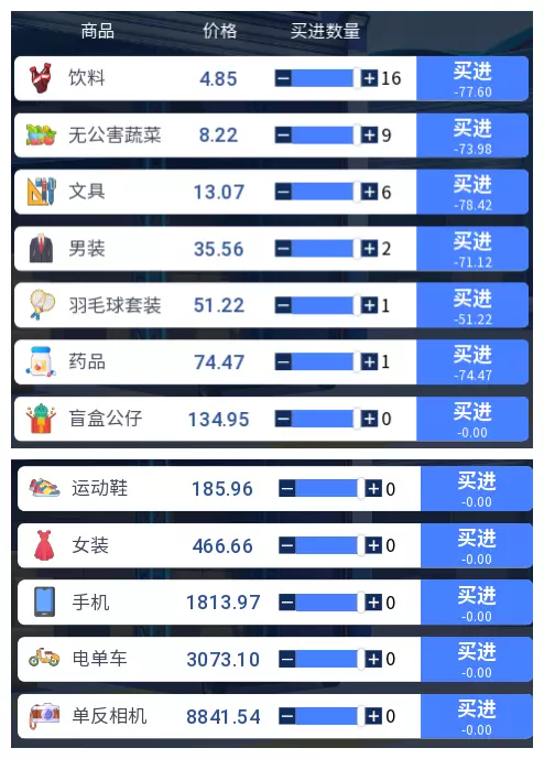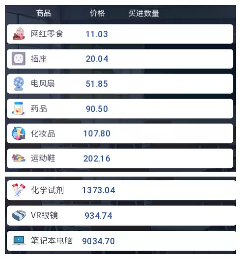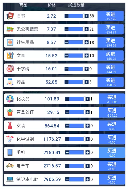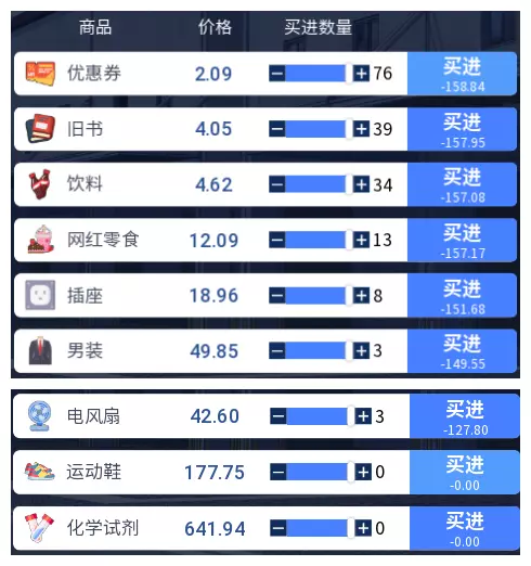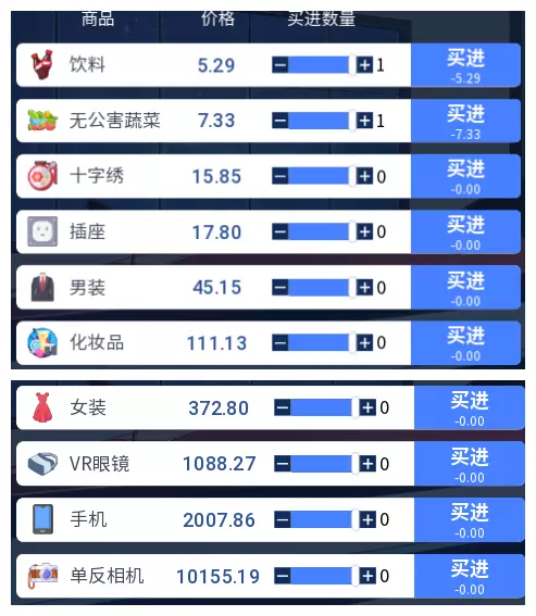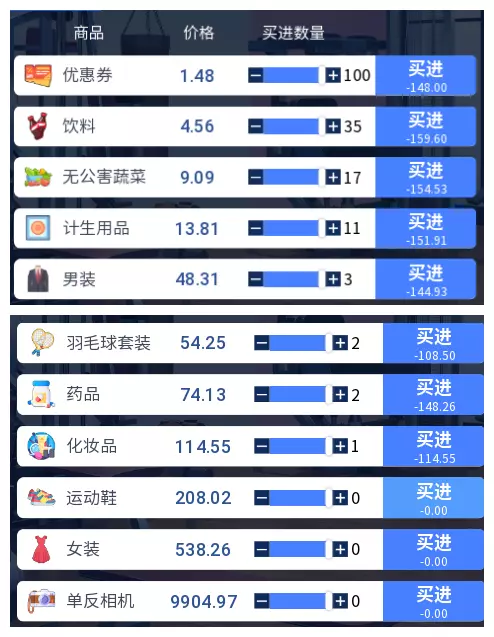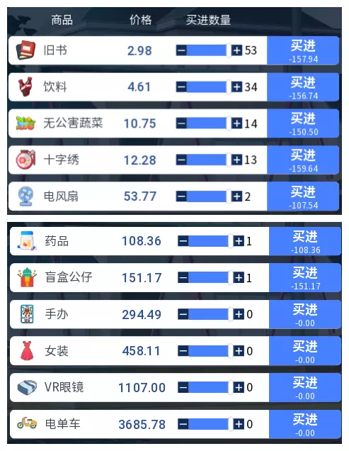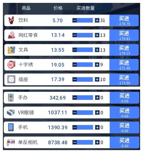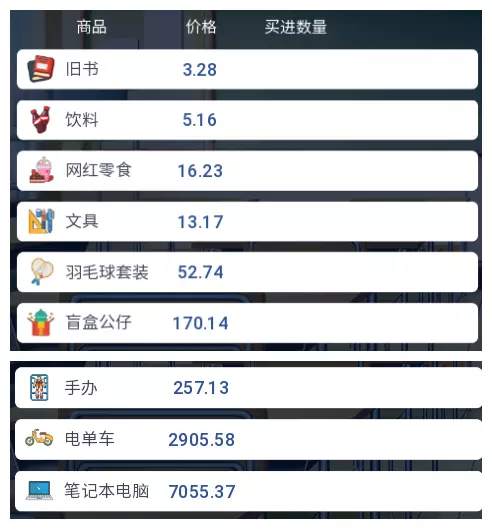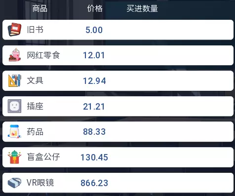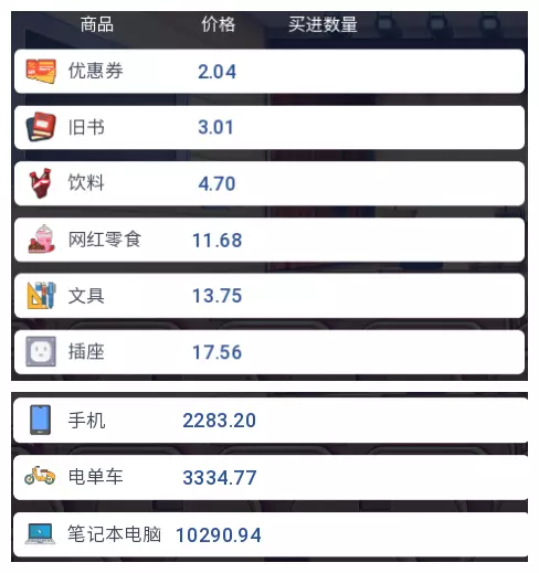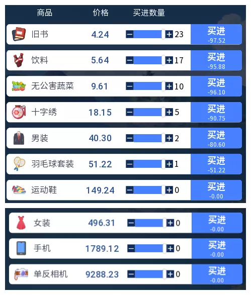 3.2 商品涨跌事件汇总 本游戏共有25件商品,每件商品对应四种随机事件,分为大涨、小涨、小跌、大跌。当地图中出现事件但无法判断具体内容时,请对照本表查看。