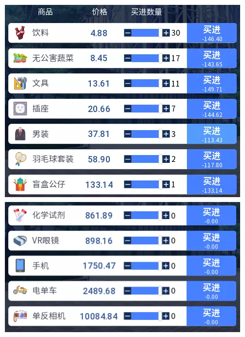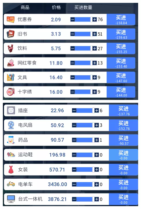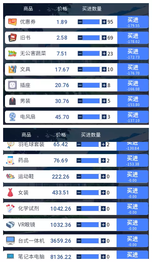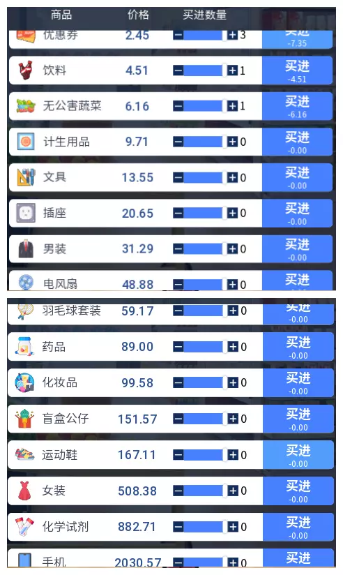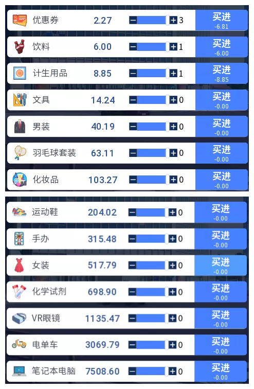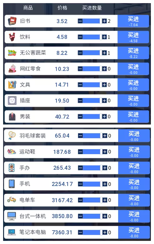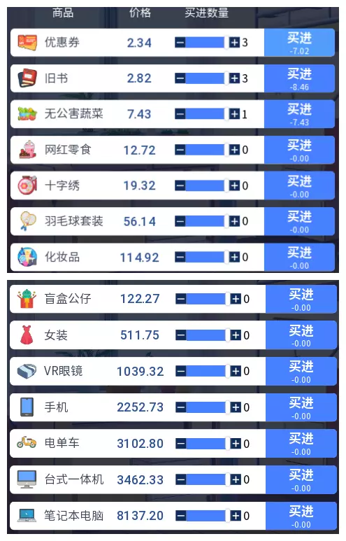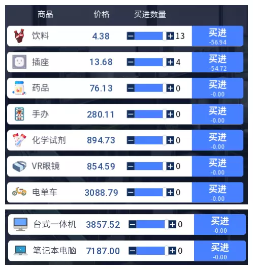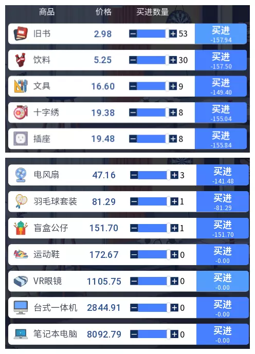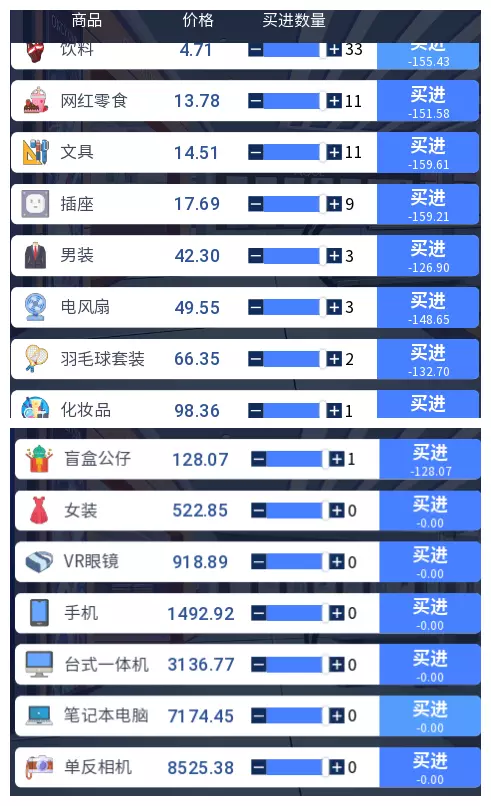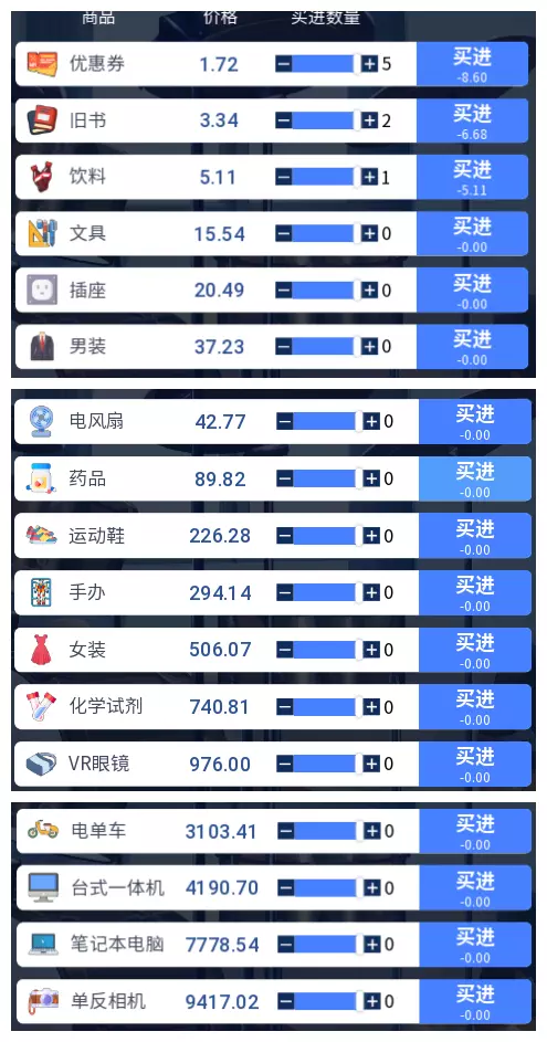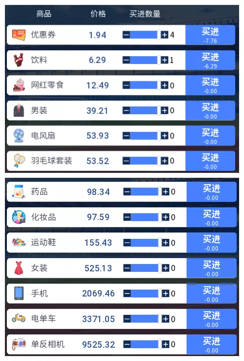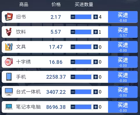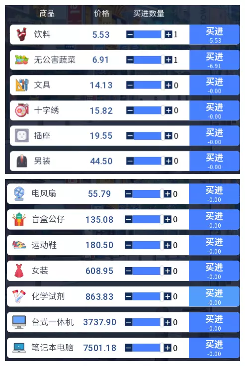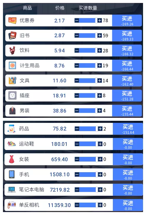 3.2 商品涨跌事件汇总 本游戏共有25件商品,每件商品对应四种随机事件,分为大涨、小涨、小跌、大跌。当地图中出现事件但无法判断具体内容时,请对照本表查看。