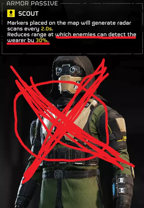 “侦察兵”护甲被动技能 我不太确定自己是从哪里得知的,但该护甲被动技能和无人机侦察助推器一样,【不会】增加任务目标点在指南针上的探测半径。