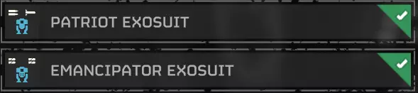 任意动力装甲(25级解锁,每个需20000 requisition) EXO-49 解放者动力装甲 EXO-45 爱国者动力装甲 这些是卡进地堡的必要装备,是单人刷SC的关键部分。也可以使用LIFT-182 跃迁背包来完成这一操作。如果想以真正高效的方式刷SC,你需要LIFT-182 跃迁背包。