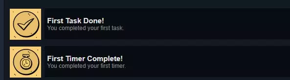 第一个任务完成!你已完成你的第一个任务。这里的“任务”当然指的是任务(Quest)啦! 第一个计时器结束!你已完成你的第一个计时器。图标本该是沙漏,而不是秒表,对吧? 与进度相关: