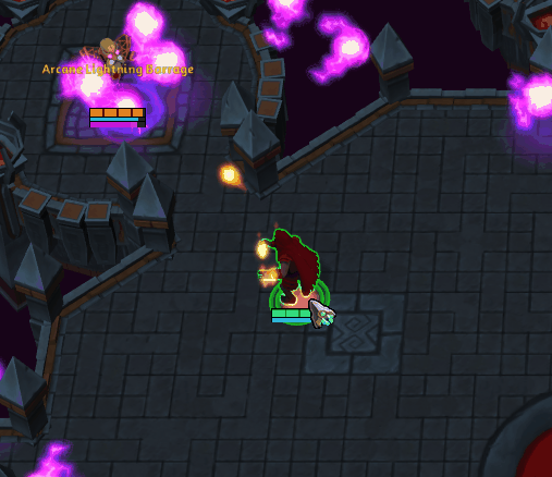 奥术闪电弹幕是温库斯的第二个技能,他会向一名玩家发射一连串投射物(2-6个)。温库斯只有在闪电突袭落地后才会施放奥术闪电弹幕。【可打断】