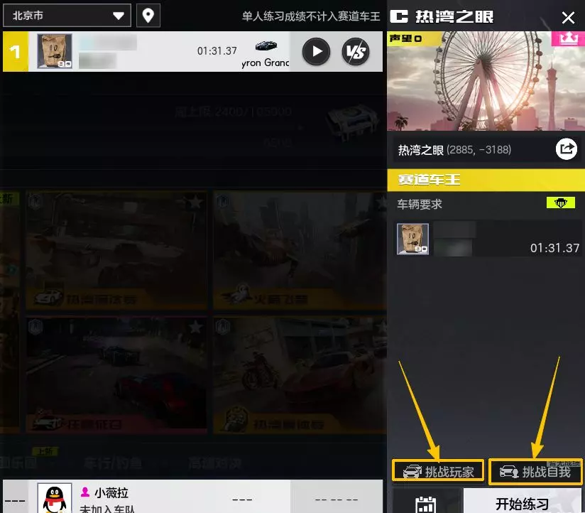赛道之王中的成绩也可作为影子挑战对象,点击【挑战玩家】即可开始挑战。