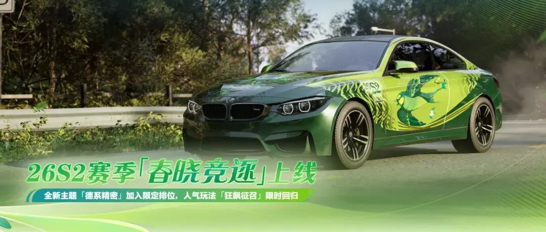 26S2新赛季「春晓竞逐」即将开启,活动期间每攻克一个更高段位,就能解锁对应的奖励。总计钻石*600、传奇改装零件*500、竞速激励卡、热力激励卡等你来拿!街头赛车手们准备好踏上新的冲分之旅了吗?