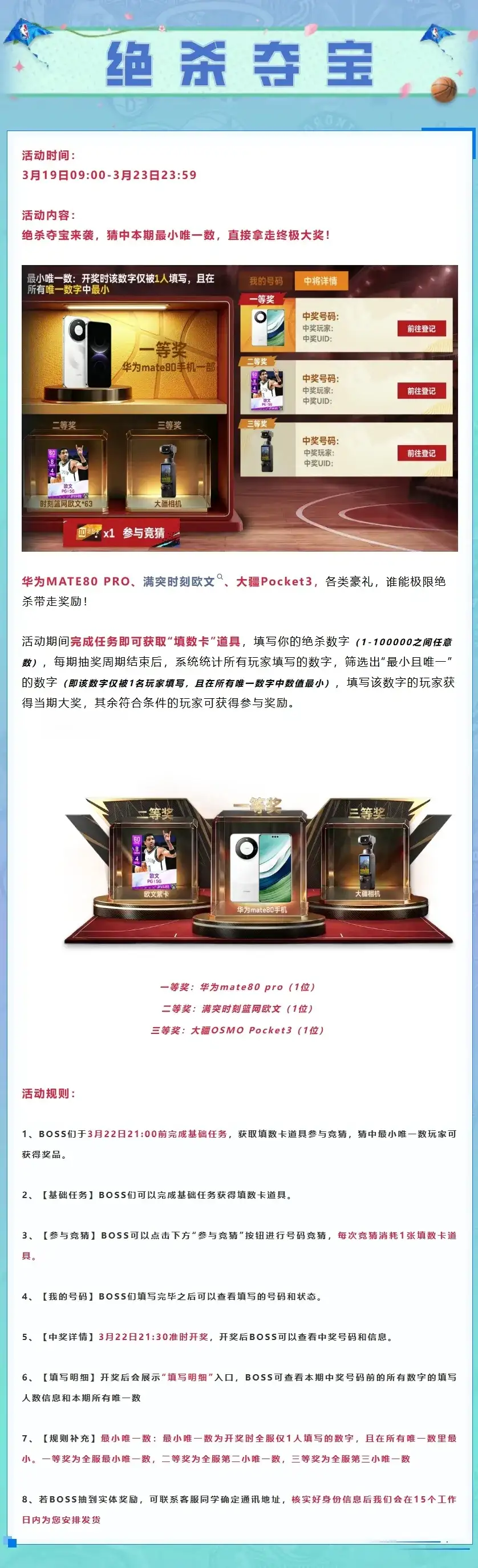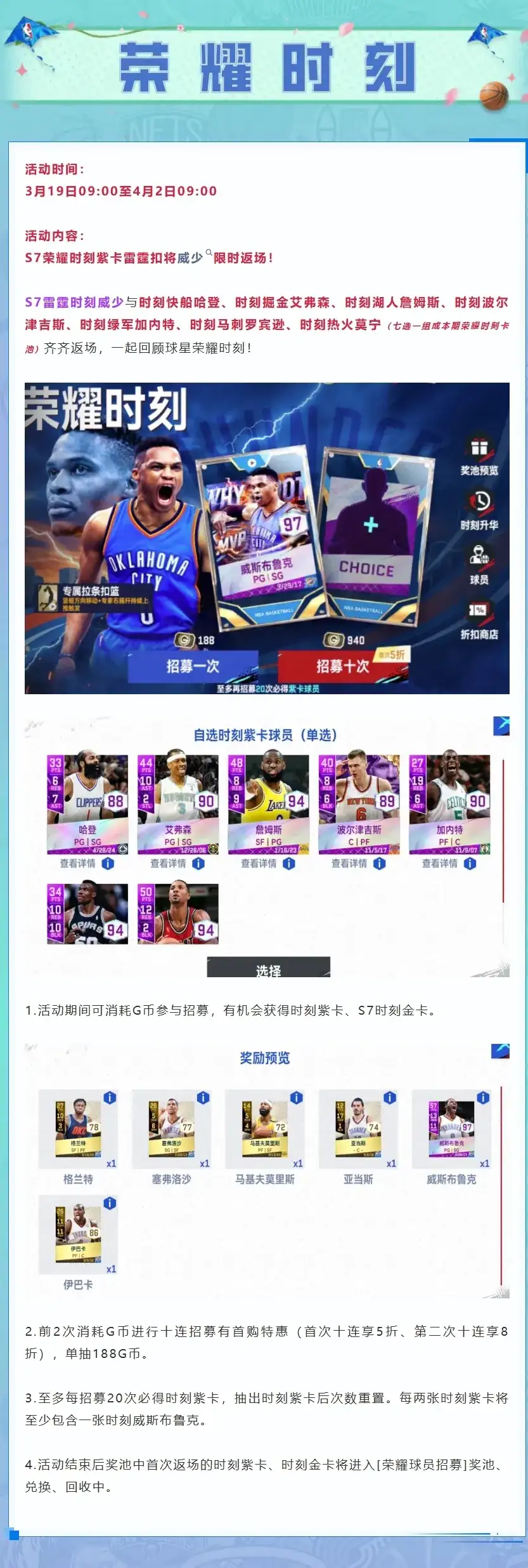 【活动公告】时刻威少返场!春日福利来袭,四大抽奖活动&百万支票奖励不容错过!