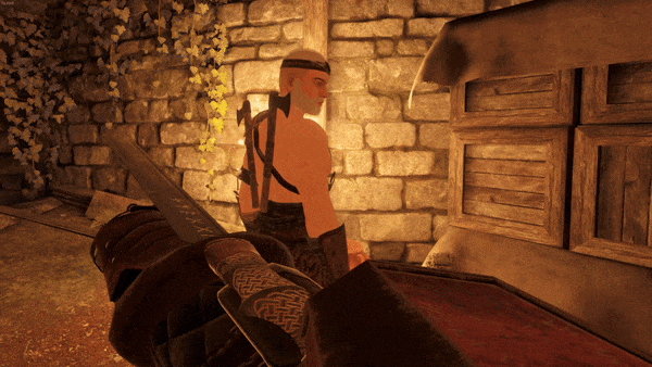 进入高度专注状态会让你比周围世界的速度更快,挥舞轻型武器时,高度专注状态能在退出该状态后赋予武器极大的速度。攻击强化利用这种速度提升,将更多动量仅施加于武器而非整个身体。要进行攻击强化,你需要在挥舞武器时激活高度专注,在攻击命中时将其关闭。 推荐使用轻型武器来施展这项技巧,因为较重的武器在高度专注状态下往往会中断攻击。攻击强化主要对肢体切断有效,因此刺击类武器从中获益不大。如果你使用细剑或用匕首刺击,在高度专注状态下进行常规攻击效果会更好。双手武器可以比单手武器更重,并且在【超专注】状态下或用于【攻击增强】时仍然有效。 所有投掷物品在脱离【超专注】状态松手时也会加速,其时机与挥砍的【攻击增强】不同。 在原版游戏中,【攻击增强】真正有用的武器只有埃拉迪安匕首(T2)、战斗匕首(T3)和贵族匕首(T4)。帝国匕首威力太弱,难以肢解敌人,因此对于此用途来说毫无用处。 不过,模组增加了更多适用于【攻击增强】的武器:【中世纪武器大合集】模组中有屠刀(T1)和符文短刀(T3,如图GIF所示),【武士刀大合集】模组则有多种 tanto 和 wakizashi(胁差),都能很好地配合【攻击增强】使用。kahnum sai(卡努姆赛伊)除了非常有趣外,作为本指南中未提及的魔法武器,它们极其轻便。无论是出于此目的还是总体而言,它们都是我个人最喜欢的武器。 思维二阶:复合武器加速 超级冲刺和攻击强化并非互斥技巧,可以结合使用以实现更强大的攻击。并非总是需要肢解敌人,但这能让肢解变得容易得多。要执行此操作:向敌人方向移动时挥动武器,同时高度专注,然后按照与攻击强化相同的时机结束。我建议在使用此技巧时不要跳跃,以便更容易对准边缘。此外,你可以稍微向前迈步并向前移动头部,以增加更多动量。如果你使用全身追踪,向前移动头部不会有任何作用,因为这不会带动身体其他部位一起移动。 这种组合会产生巨大的动量,我曾见过头颅像打砖块游戏里的球一样多次弹起。如果敌人刚好排成一列,你可以把头颅当作投射物使用。 思维3级:肢解