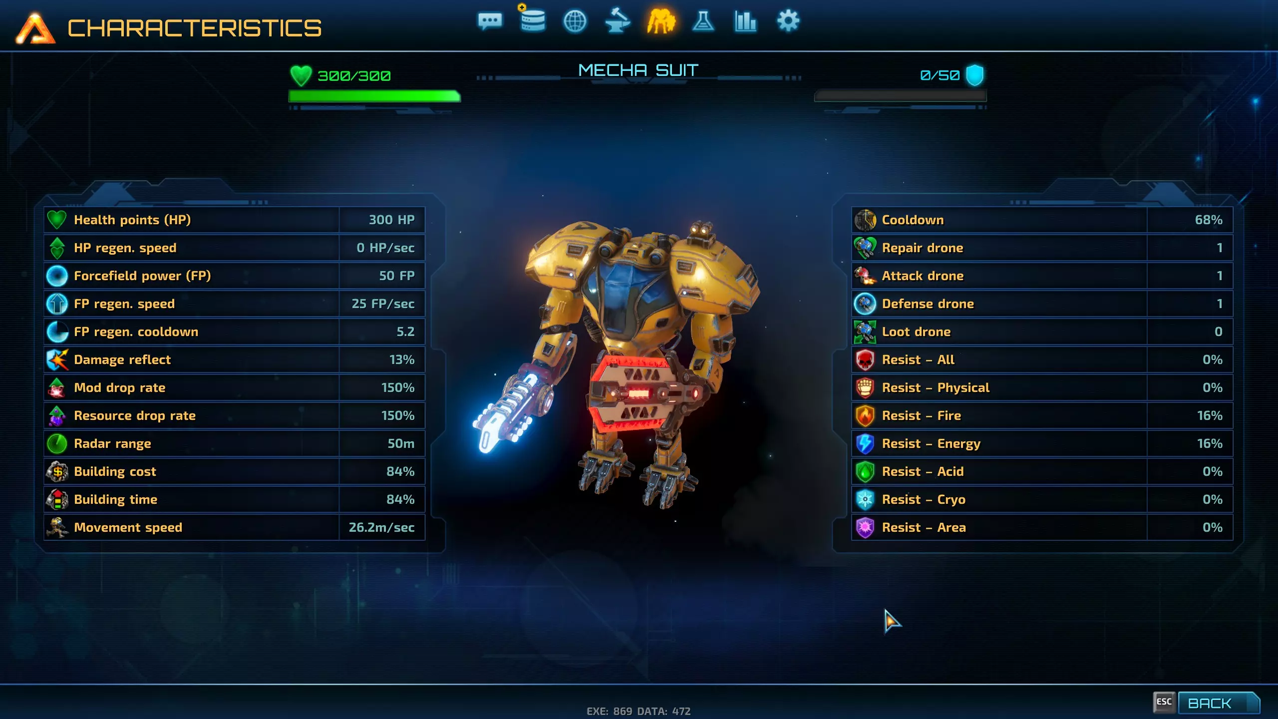图6:装备有能量传感器、维修工具、防御装备及进攻性装备的机甲。其速度快,具备出色的探索与战斗能力。2.0版本更新后,将无法这样配置。你需要寻找具有这些特性的世界掉落模组。 首选机甲武器: 1) 剑(或激光剑),需配备以下模组: 命中时恢复生命值(启用)。此模组效果极佳!生命值较低?那就多战斗! 射程。将范围从3米提升至4米(极限) 任意伤害模组(优先选择寒冷伤害以减缓怪物速度) 2) 迷你机枪配备以下模组: 启用追踪弹 启用穿透目标 启用溅射伤害 3) 榴弹发射器配备以下模组: 减少弹药消耗 提高射速 任意伤害模组 4) 等离子枪配备追踪弹及其他模组 5) 火箭发射器配备追踪弹及其他模组 6) 腐蚀枪配备追踪弹及其他模组 完成哈泽尼特地图后,接下来的任务将是酸性生物群系任务,以解锁钯元素。这对于气体能源2(及3)至关重要。下一次总部升级确实需要该能源,因为它能解锁更多通信中心和研究实验室。30K资源存储就是为此准备的。我个人会在进行下一次总部升级前,将存储缓慢提升至50K。接下来是10万,然后是20万,最终达到总量(存储分布在多个前哨站,总部也有一些)。到那时,你的经济应该足够强大,能够抵御一波又一波500%强度的虫群。现在你可以随心所欲地玩游戏了。 提示 提示:护盾发生器可以叠加!一个能为墙壁和炮塔提供4000点护盾,两个就能提供8000点。 提示:我最终的总部防御炮塔布局很简单——只需两排炮塔和2-3层墙壁。第一排是迷你机枪塔和等离子塔交替排列。第二排是火箭塔和火炮塔交替排列。每个角落放置一个加特林激光炮塔。