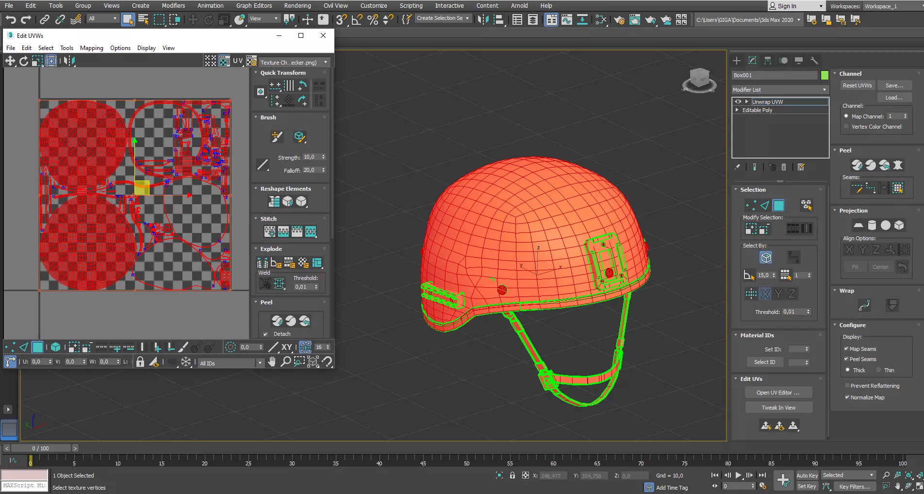 SOBR头盔模型替换简易指南。基于3D编辑器3Ds Max。 模型 在3Ds Max中创建带有UV展开的模型。为了进行模型测试,我创建了一个带有展开的简单头盔模型。