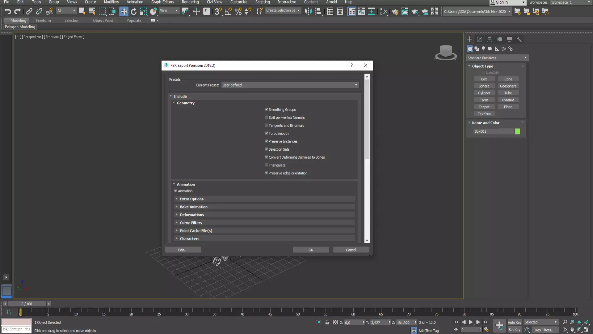 将模型导出为FBX格式。