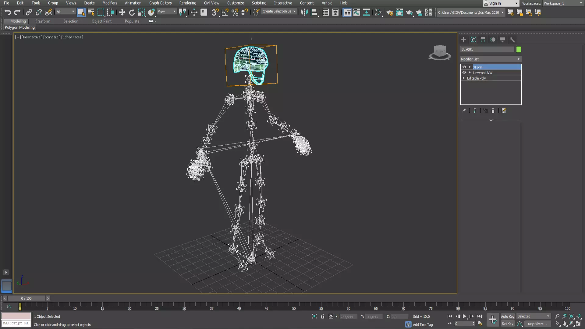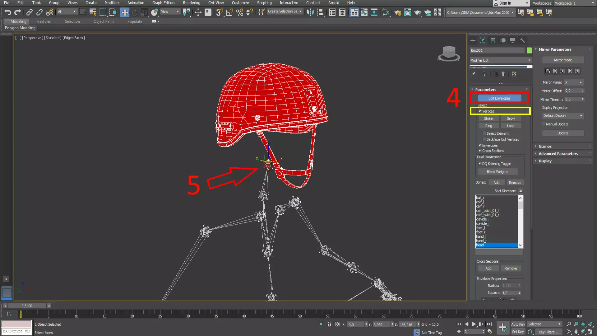 4. 选择【编辑包络】。 必须启用【顶点】。 5. 选择头部骨骼(Head)。