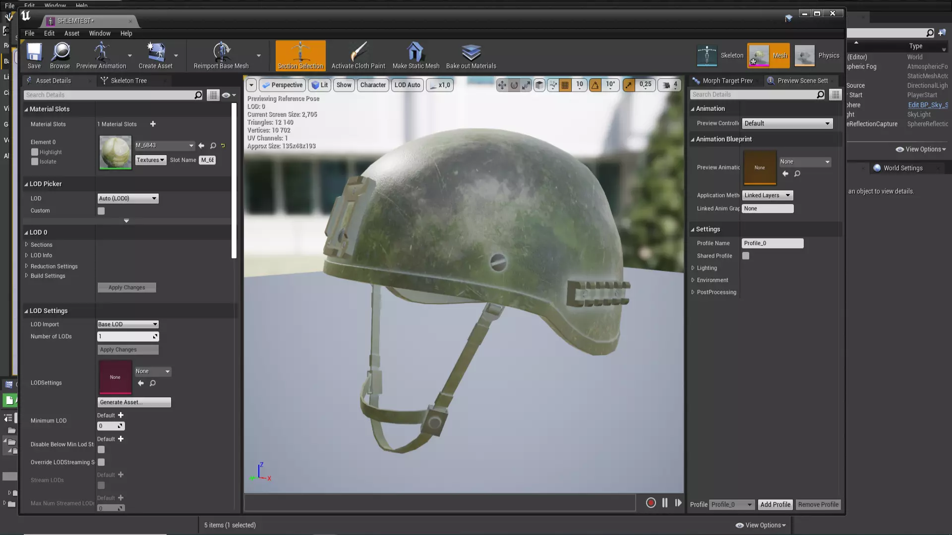 虚幻引擎。 导入带骨骼的头盔模型,并将模型纹理导入引擎。按为模组创建的插件文件夹进行操作。