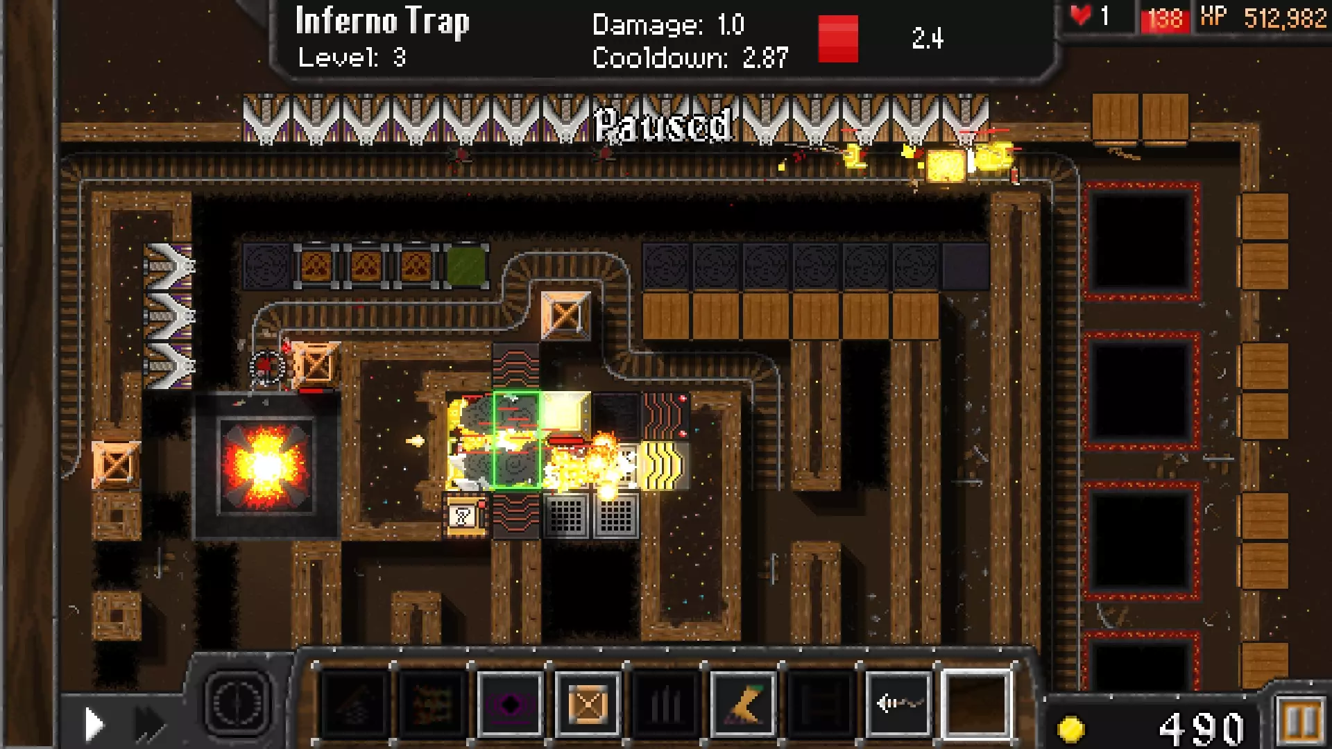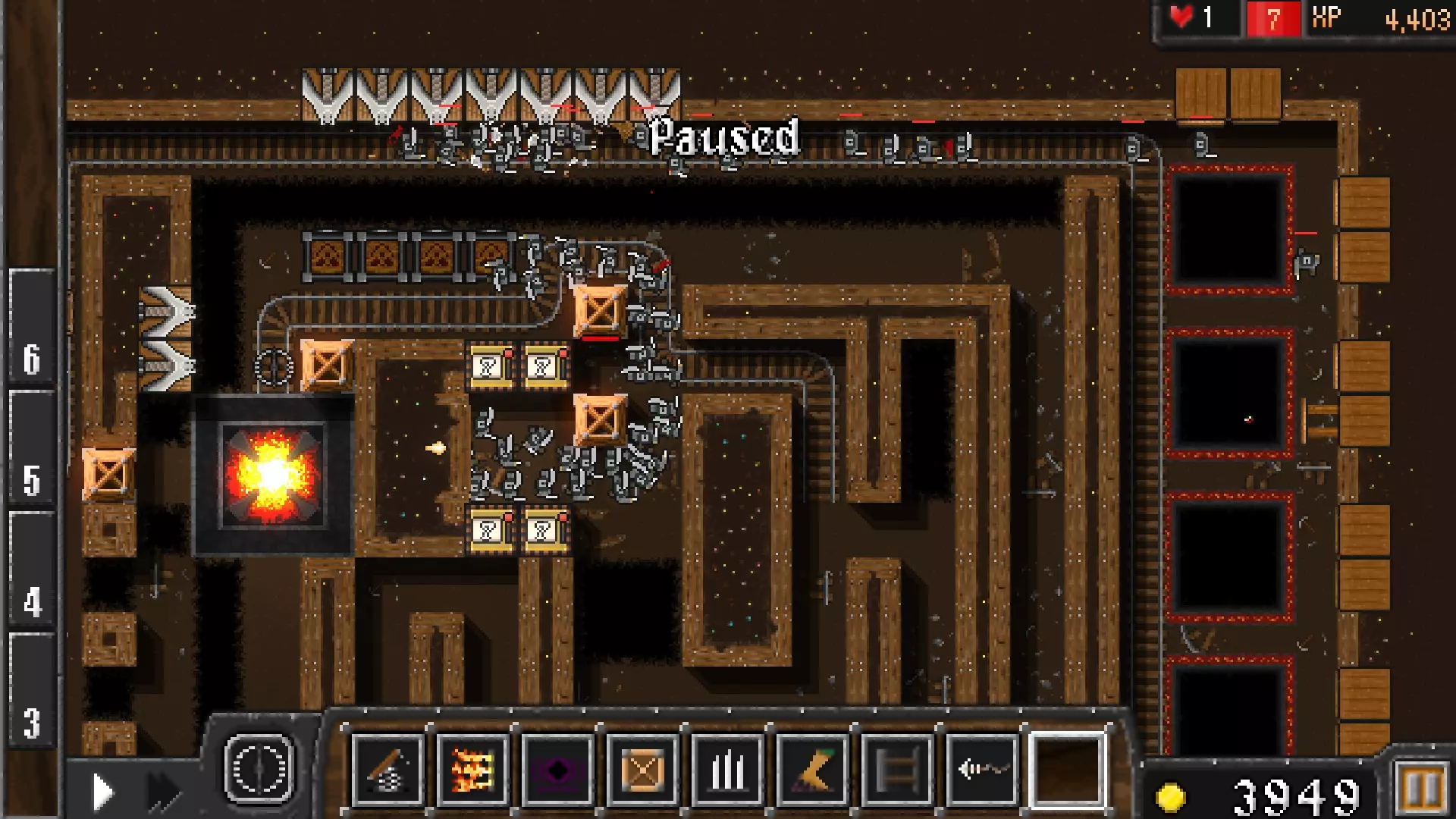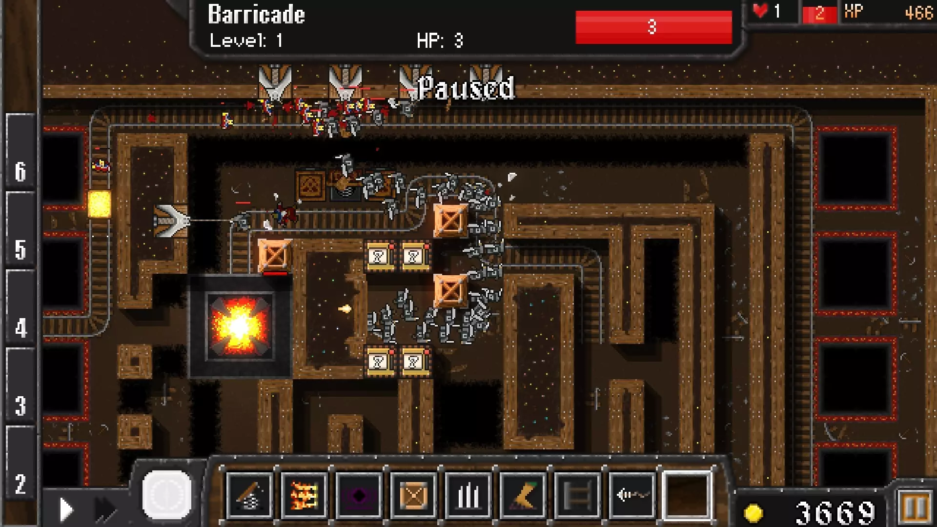 添加两个地狱陷阱,但务必保留足够的金币来升级或重建左侧的黑洞陷阱
