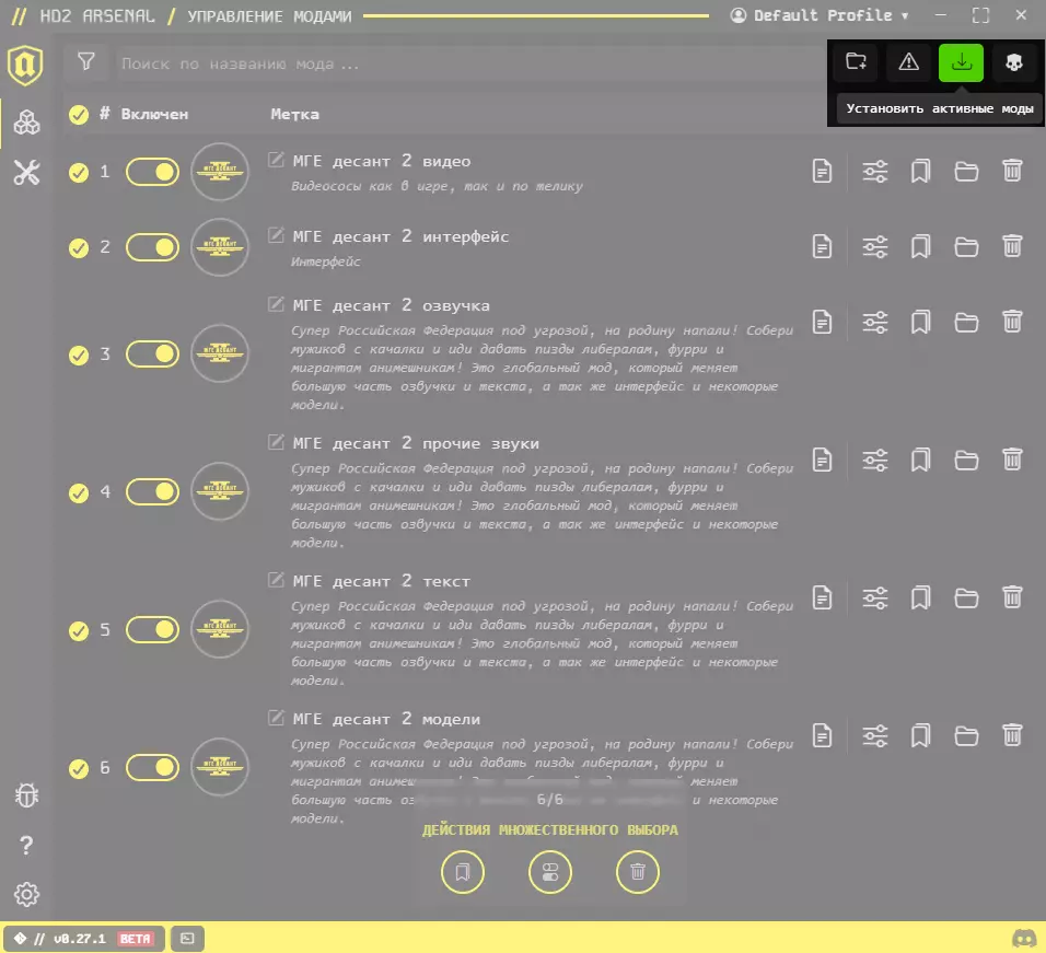哪里下载及如何安装 视频教程 哪里下载?所有最新链接可在我们的discord服务器上找到 如何安装? 强烈建议使用Arsenal作为模组管理器。 下载后,请检查路径及其可访问性(对于难以访问的路径,可能需要管理员权限)