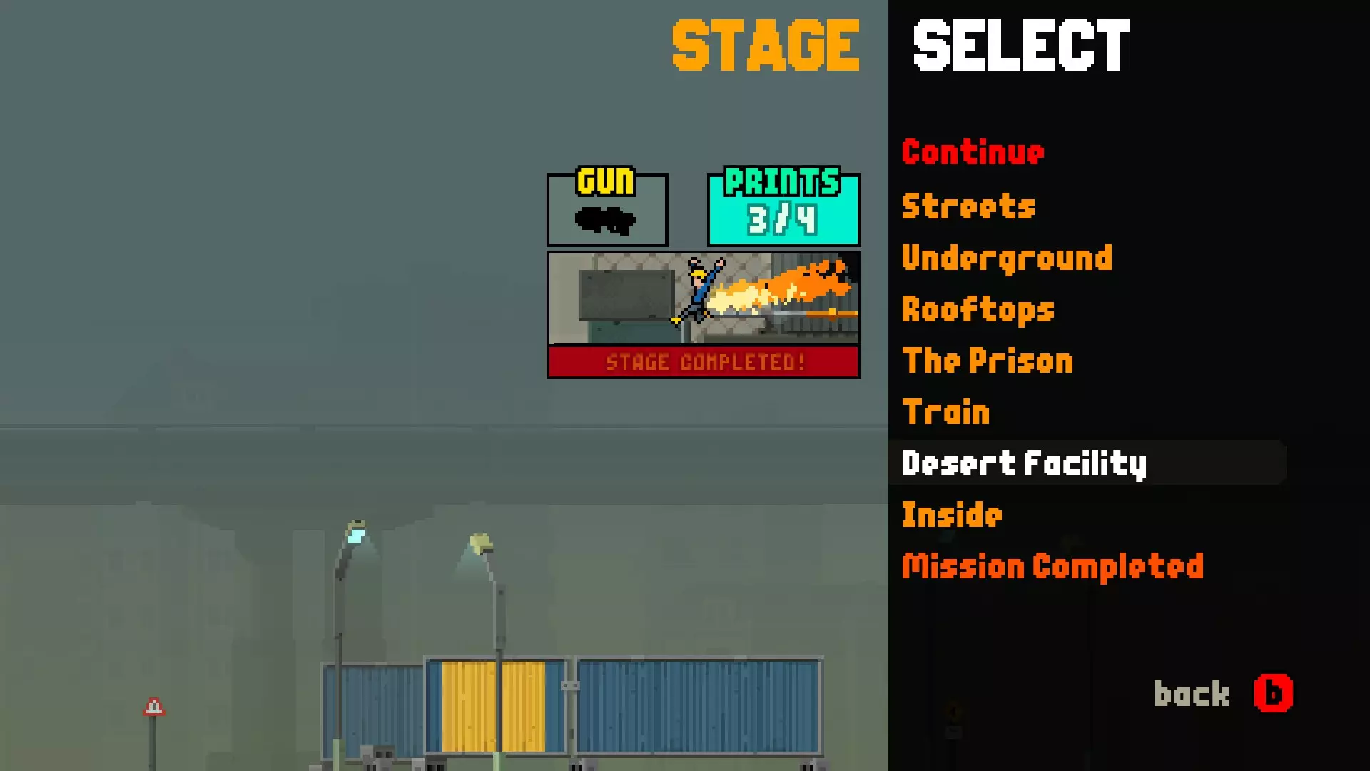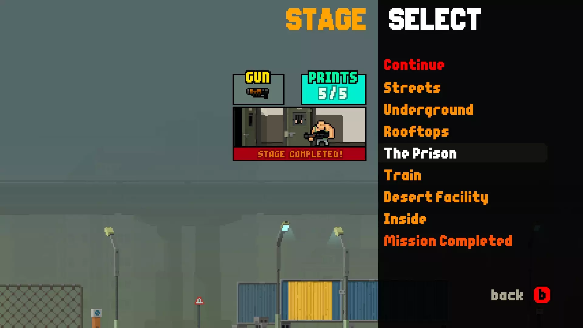 弹药收集 收集所有武器 要获得此成就,你需要在各个关卡中找到所有不同的武器,并在仓库中购买其他武器。 关卡:“街道”霰弹枪 关卡:“地下”加特林机枪 关卡:“屋顶”火箭筒 关卡:“监狱”未知武器 关卡:“火车”突击步枪 关卡:“沙漠设施”三路武器 关卡:“内部”无武器 【The astronaut】成就