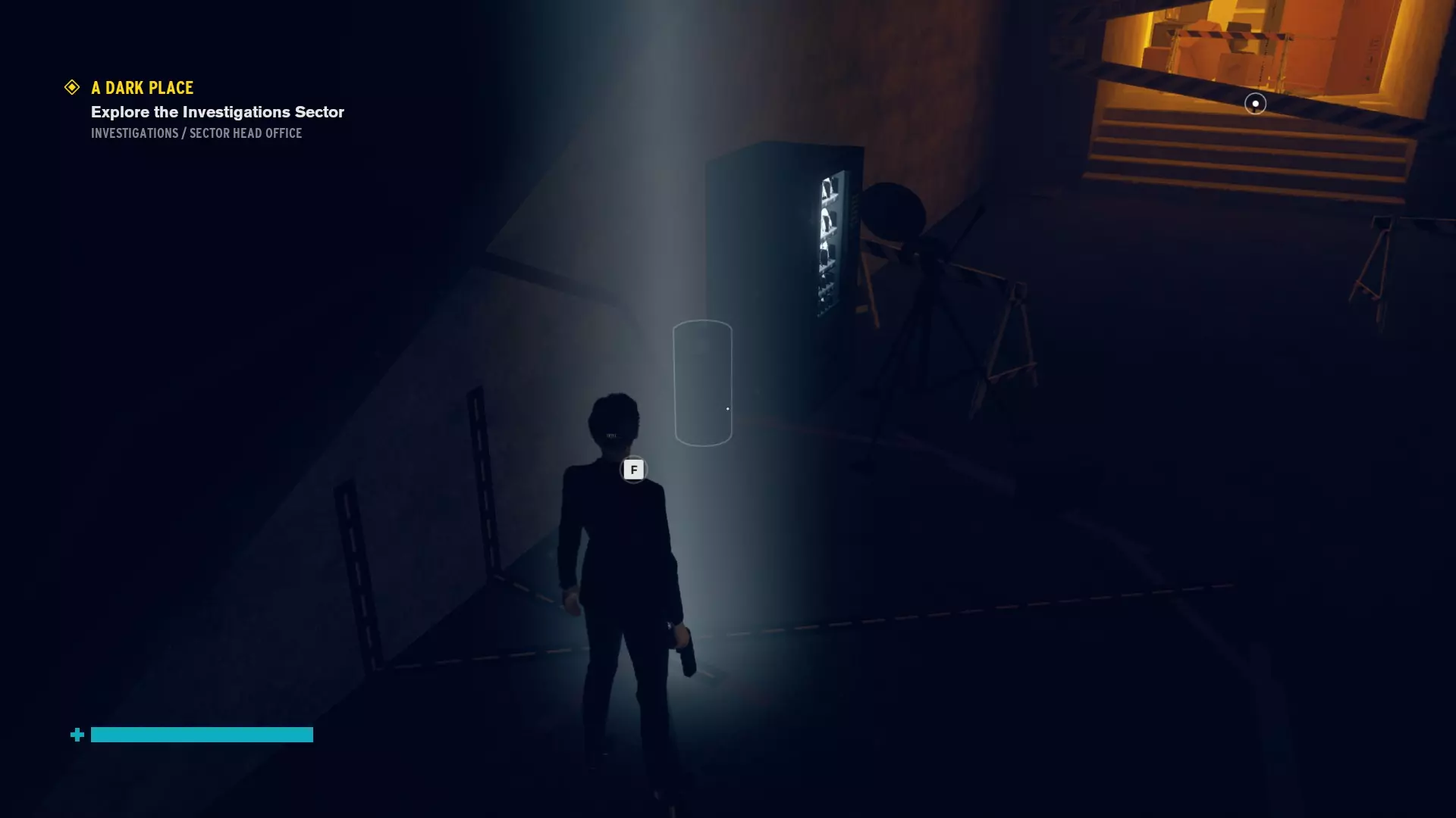 现在,传送到【密封防火带】。我们将从那里开始,处理地图上显示的九台自动售货机。它们中任何一台都可能被附身,所以一旦看到,就向它射击。