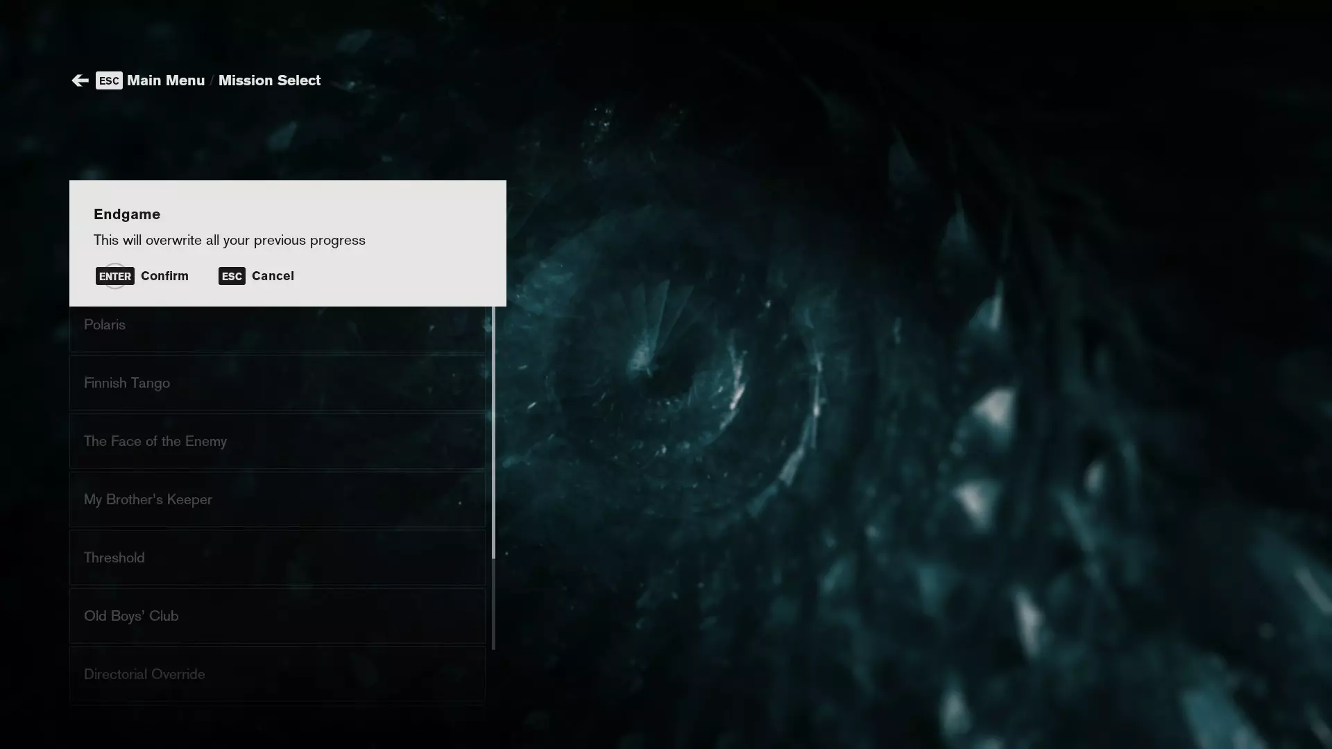 你的存档看起来是这样的 步骤1. 重置存档 这一步至关重要,请勿跳过。 在标题界面,选择【任务选择】,然后选择【终局】: