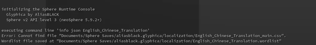 单词检查器:过滤不规范单词。 修订翻译:单词会有多个词性,将它们拆分,之后会将不同词性释义与相同单词组合后放入词库。 无逗号:同类释义挑选一个。(更新:将过长的不同类释义再次拆分) CSV写入器:将词库导出到游戏文件夹下。若文件可成功运行则直接跳转至第三部分。 若运行失败,则下载简介中的【English_Chinese_Translation_wordlist.csv】文件,并将其移动到【Documents Sphere Saves aliasblack.glyphica localization】文件夹中。