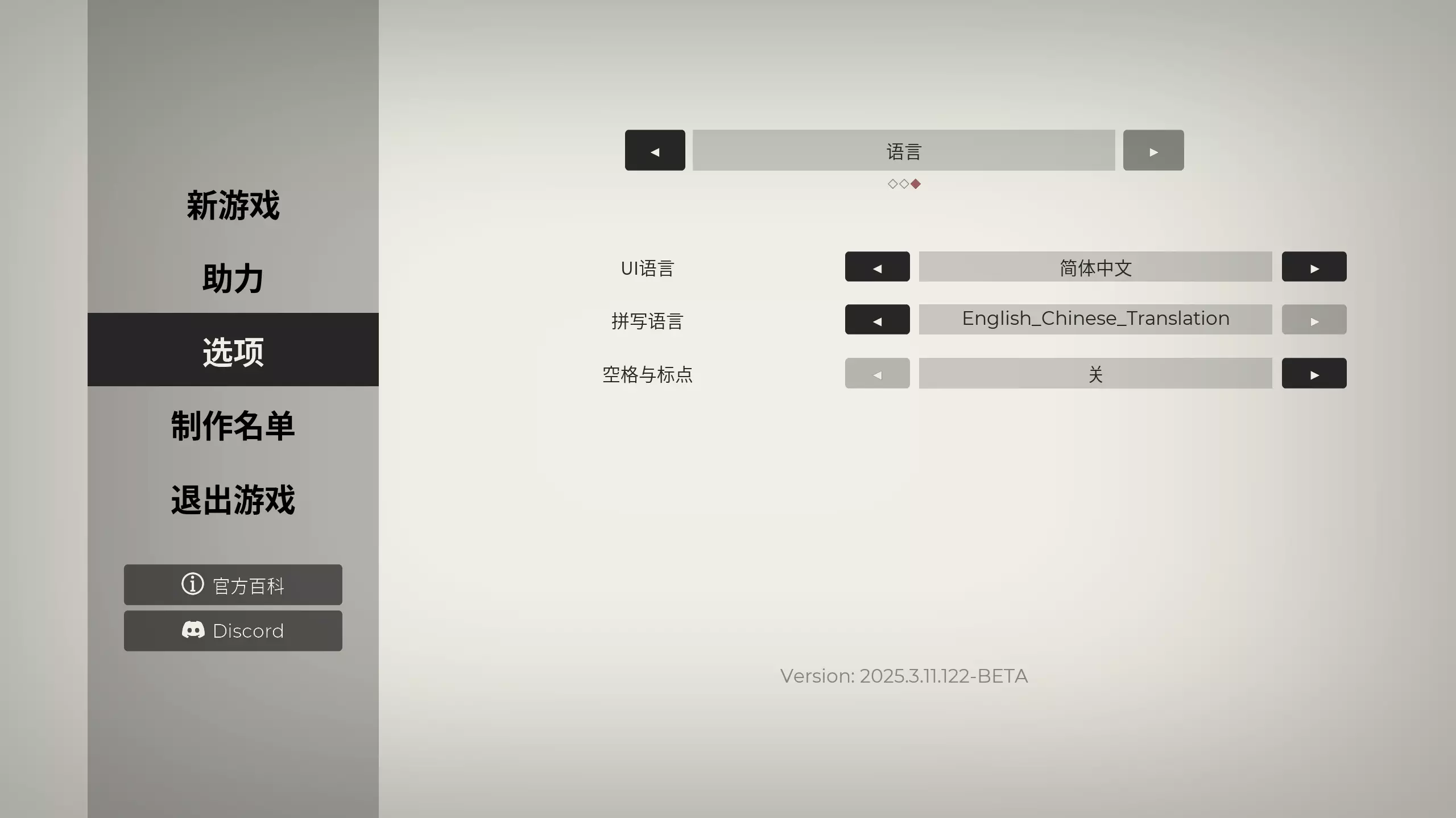 再次进入游戏,将选项中的语言调整至如图所示。