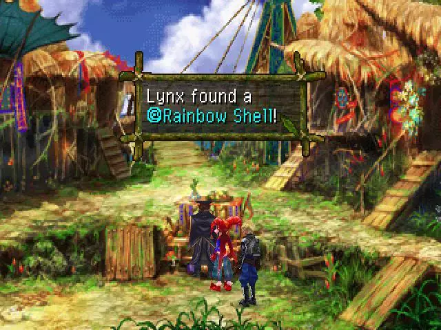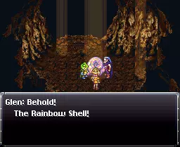彩虹贝壳2 地点 - 另一个世界的特米纳 获取方法: 如前所述,这个比较特别。在毒蛇庄园 Kid 中毒事件之后,返回特米纳,与“毒蛇吉事果”销售员对话。他会说生意很差,向你寻求建议。他说要花费100G,你有3个回答选项(简略回答,详细的我忘了): 1. 太便宜了。 2. 太贵了。 3. 正好。 选择“太贵了”,他会让你建议一个价格,设定在60G左右。如果你填得更低,他会说些有趣的话,你可以试试,哈哈。但如前所述,设定在60G左右他就会同意。现在,如果你前往斯凯利奶奶的家并走到窗户附近,就能触发一段事件。你会看到在他降价后,生意变得非常好。你可以随时和他对话,他会免费给你一些毒蛇油条吃。目前还无法获得【彩虹贝壳】,后续还有较长的剧情流程。 在山猫事件结束后,也就是波尔士兵占领特米纳,并且你夺回自己的身体之后,再次去找他。他会给你一些剩饭,你会自动吃下去。吃的时候会提示“你咬到了里面硬硬的东西”,检查后就能获得【彩虹贝壳】。这可真是等了好久啊。