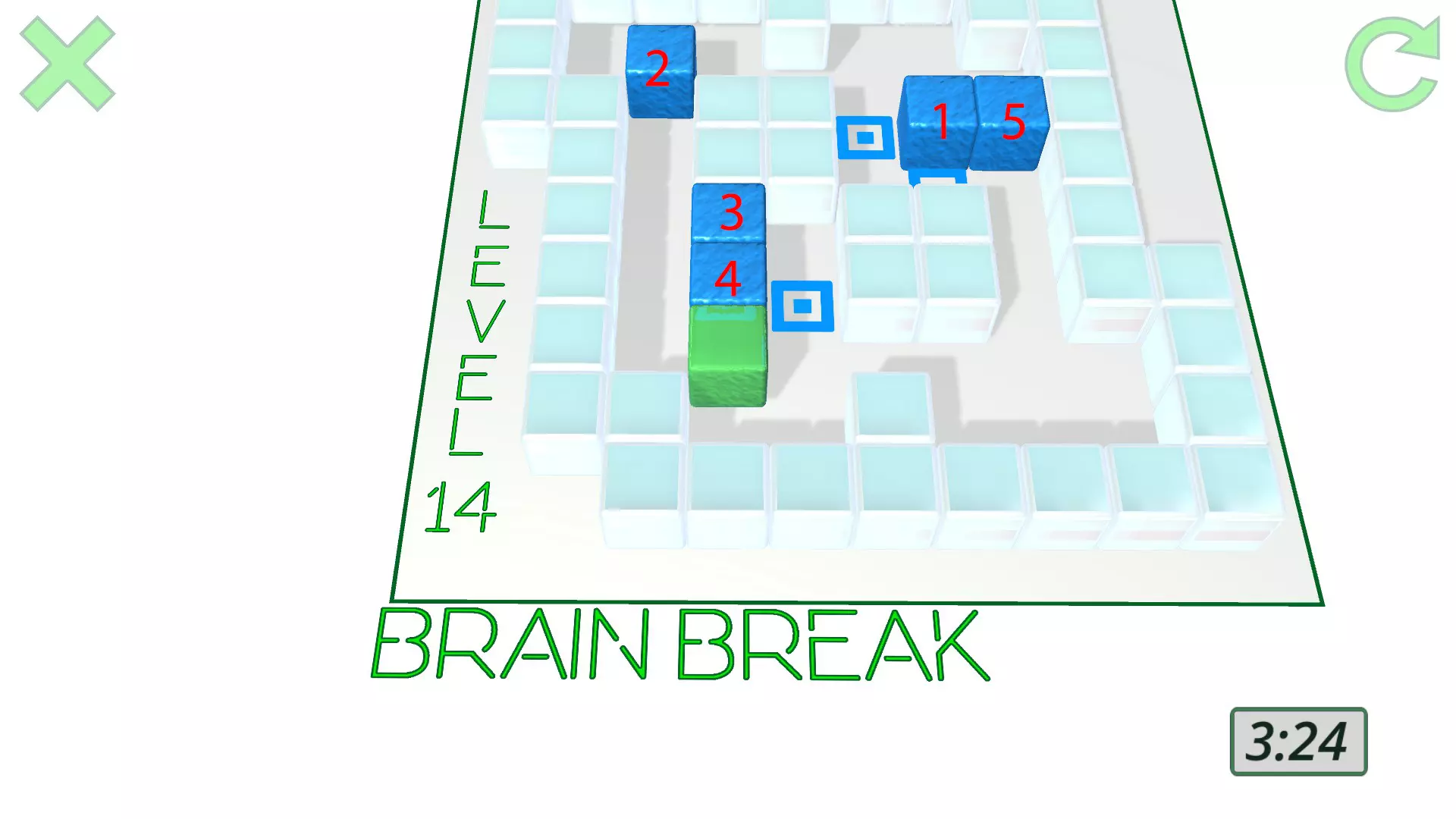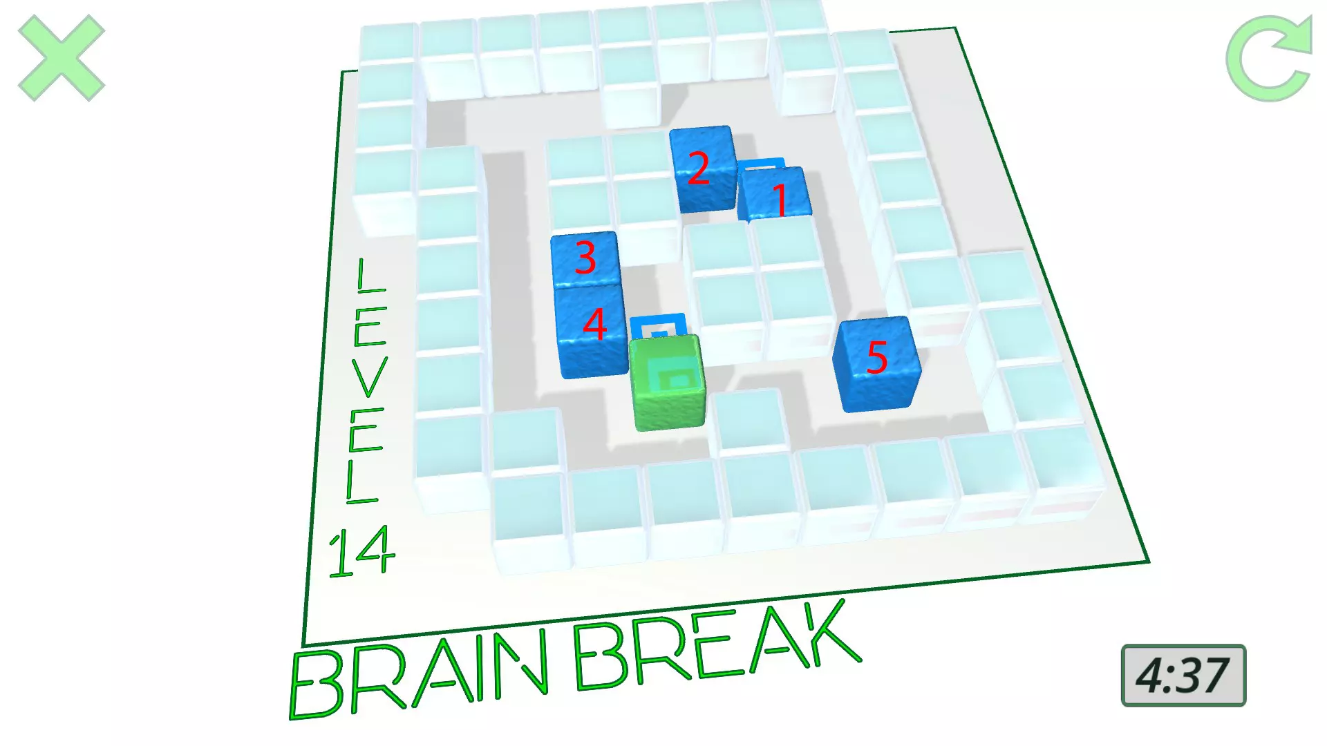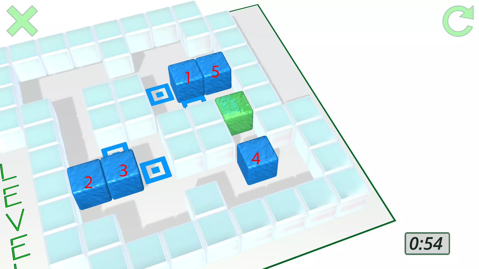 现在一切准备就绪,终点就在眼前: 将方块3向右移动,靠近它的同伴方块1和方块2。 推动方块5一下,完成这该死的关卡。 干得漂亮