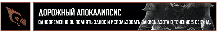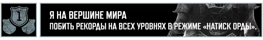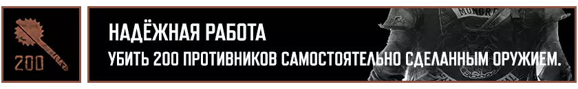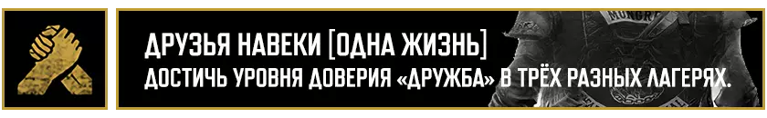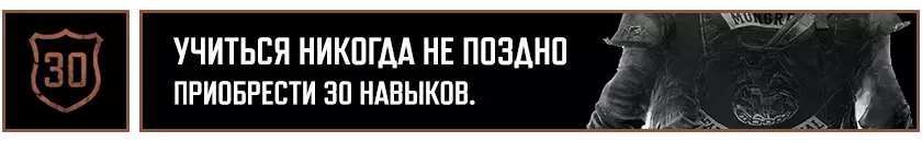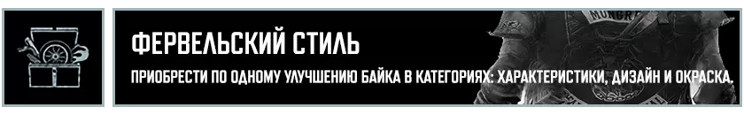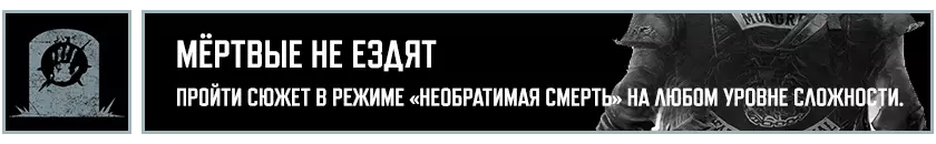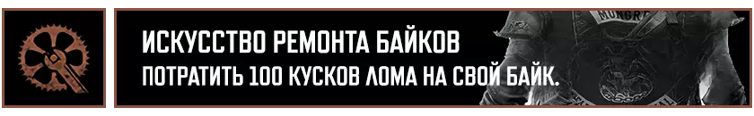 在推进主线剧情的过程中,你将获得12项成就: "Всего лишь царапина"——从【疯狂威利】中逃脱。 "Срочная доставка"——为塔克或库普兰递送货物。 "Цель и средства"——查明【NERO】的遭遇。 "Потерянные и найденные"——与布哈雷姆一同前往南方。 "Братья по оружию"——送别布哈雷姆。 "Верни своё имя"——以服务换取服务。 "Номад-одиночка"——独自踏上旅途。《往日不再》成就列表: “坚持住”——见到熟悉的面孔。 “有些东西变冷了”——重新找回失去的事物。 “我等这一天很久了”——彻底复仇。 “Morior Invictus”——夺回本就属于你的东西。 “过去的事”——完成“余生”剧情战役。 ——主角和他的摩托车