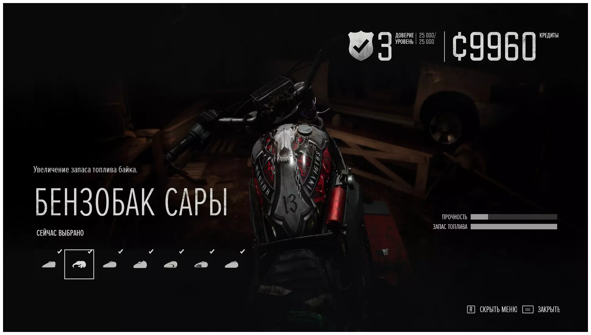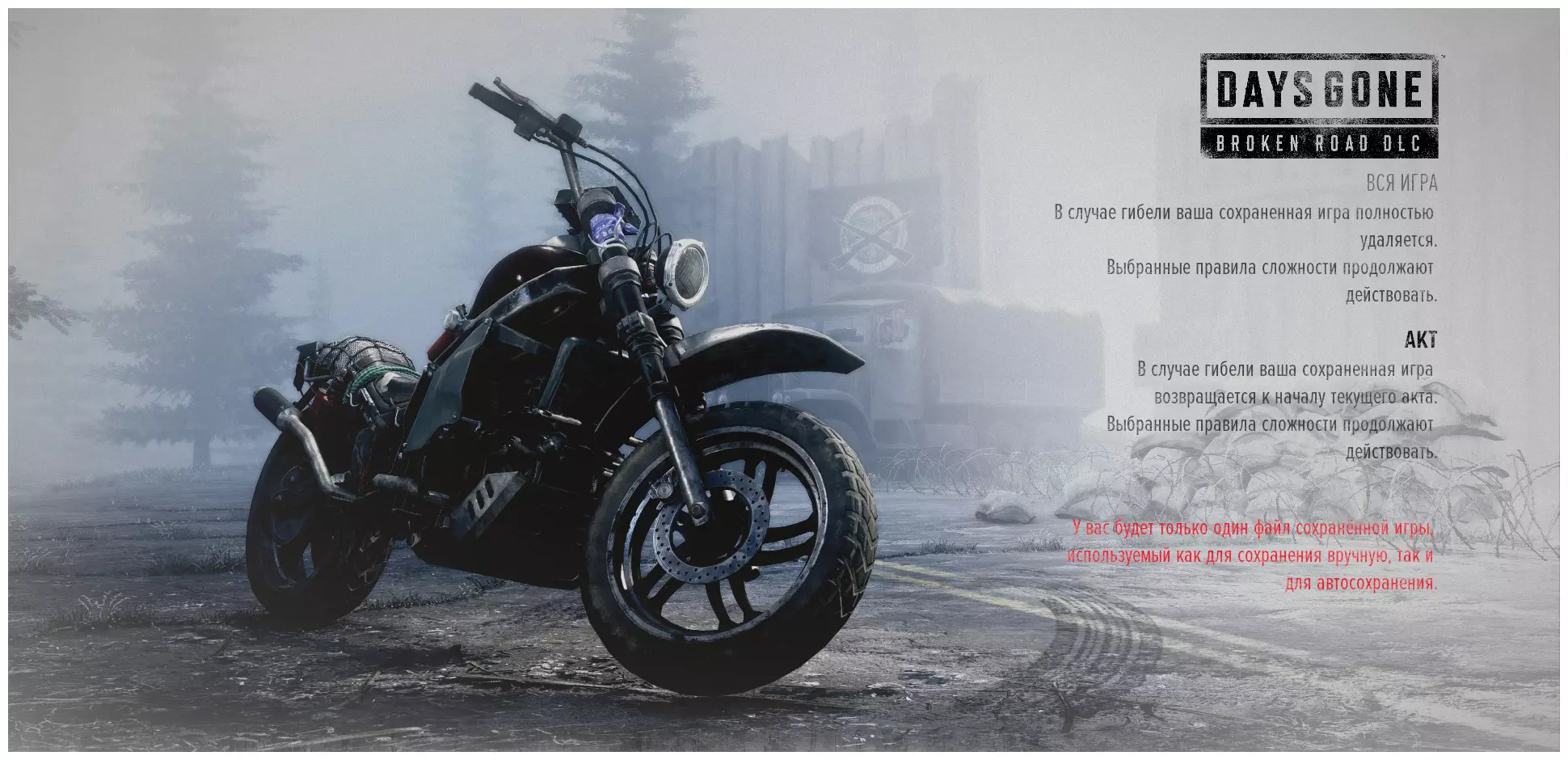 最好在第二次通关游戏时完成这些成就。 启动【新游戏+】并选择【生存II】难度。 为避免遇到困难,在首次通关时请执行以下操作: 购买四到五级的枪械。 将摩托车升级到最高级,尤其是油箱。 提升角色属性——生命值、耐力和专注力。解锁所有三个技能分支中的全部技能。