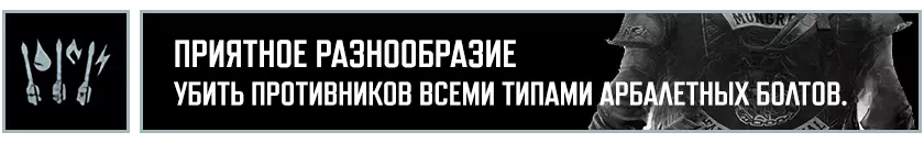 游戏中共有5种十字弩箭矢类型: 普通箭矢 - 该类型箭矢从游戏一开始就可使用。 灰烬箭矢 - 完成剧情任务【他们没睡着】后解锁。 燃烧箭矢 - 清理【迪尔伯恩】伏击营地后解锁。 爆炸箭矢 - 清理【阿斯彭比尤特】伏击营地后解锁。 剧毒箭矢 - 完成剧情任务【我想到了些东西】后解锁。当你拥有所有类型的十字弩箭后,只需用每种箭各击杀一个敌人即可。此外,如果说燃烧箭和爆炸箭的作用比较容易理解,那么值得详细说明一下灰烬箭和毒箭。灰烬箭的工作原理是:当用此类箭射中敌人后,该敌人会开始攻击其他敌人。灰烬螺栓的效果不会消失,因此被螺栓击中的敌人会被其他敌人或你自己终结。而中毒螺栓的工作原理如下:用此类螺栓击中敌人后,敌人会开始缓慢受到伤害,随后死亡。最后,可以从【射击】分支中习得【锯齿箭头】技能。该技能能增加十字弩螺栓的伤害。开放世界收集 耳朵收集者