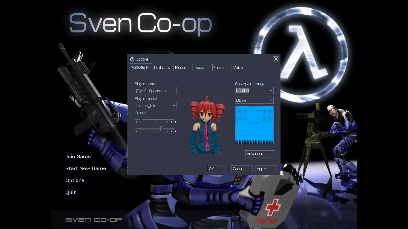 将上面选中的、位于“tutorial”文件夹内的项目复制粘贴到你的“svencoop”文件夹中,该文件夹的位置同样为:C: Program Files (x86) Steam steamapps common Sven Co-op svencoop。在此步骤中,当弹出“替换目标中的文件”对话框时,点击该对话框以覆盖你旧的选中喷漆文件。(这不会对原版喷漆造成任何损害,你之后仍可选择使用它们)。最后,你需要找到并删除“svencoop”文件夹内的“custom.hpk”文件,这样《 Sven Co-op》就能为你的喷漆生成一个新的文件。(每次上传新的自定义喷漆时都需要执行此操作)。步骤4:选择喷漆。启动《 Sven Co-op》,进入“选项”并点击“多人游戏”选项卡。导航至【喷漆图像】框,点击其下方的选择框。找到本教程开始时创建的BMP文件(即你命名的文件)并选中它。在本教程中,我将我的图像命名为“Untitled”。点击【确定】。