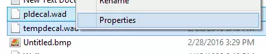 将图像另存为“pldecal.wad” 步骤3:上传图像 现在,你需要复制刚才保存的“pldecal.wad”,并将副本命名为“tempdecal.wad” 然后同时选中pldecal和tempdecal,右键点击并选择属性。