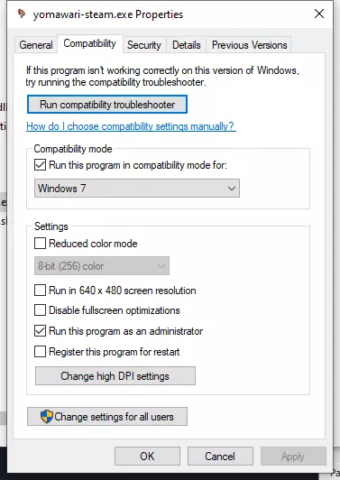 5.手柄问题 游玩过程最好使用手柄 Xbox手柄无法识别问题(因为这个问题我没有遇到,所以未经测试): 解决方法步骤 1.打开Steam,点击左上角菜单→进入设置 2.在设置菜单中选择控制器 3.点击通用控制器设置 4.在弹出的窗口中,将所有选项都打勾(启用所有控制器支持): 包括但不限于: Xbox配置支持 PS配置支持 Switch Pro支持 通用手柄支持 以及其他识别选项 5.确认后关闭设置窗口,重新启动游戏。 6.ASUS Gamer OSD 冲突 该软件可能阻止游戏启动。需要卸载或禁用它。 7.旧驱动残留文件 如果旧显卡驱动文件未被完全清理,可能会导致游戏无法运行。 建议: 1.完全卸载游戏(例如用 Revo Uninstaller); 2.完全卸载显卡驱动; 3.使用 CCleaner 清理注册表; 4.然后重新安装显卡驱动和游戏; 5.最后再次更新 DirectX。 8.兼容模式和管理员身份 试着以不同 Windows 版本的兼容模式运行游戏(如 Windows 7或Windows 98 / Windows Me)。 具体如何操作:游戏目录找到“Yomawari-steam.exe”可执行文件,右键点击它,选择【属性】,在【兼容性】选项卡中勾选【以兼容模式运行这个程序】,然后从下拉菜单中选择所需的 Windows 版本。同时,也可以尝试勾选【以管理员身份运行此程序】选项。右键点击“exe”文件,找到“兼容性”选项,勾选下方的“以管理员身份运行”。