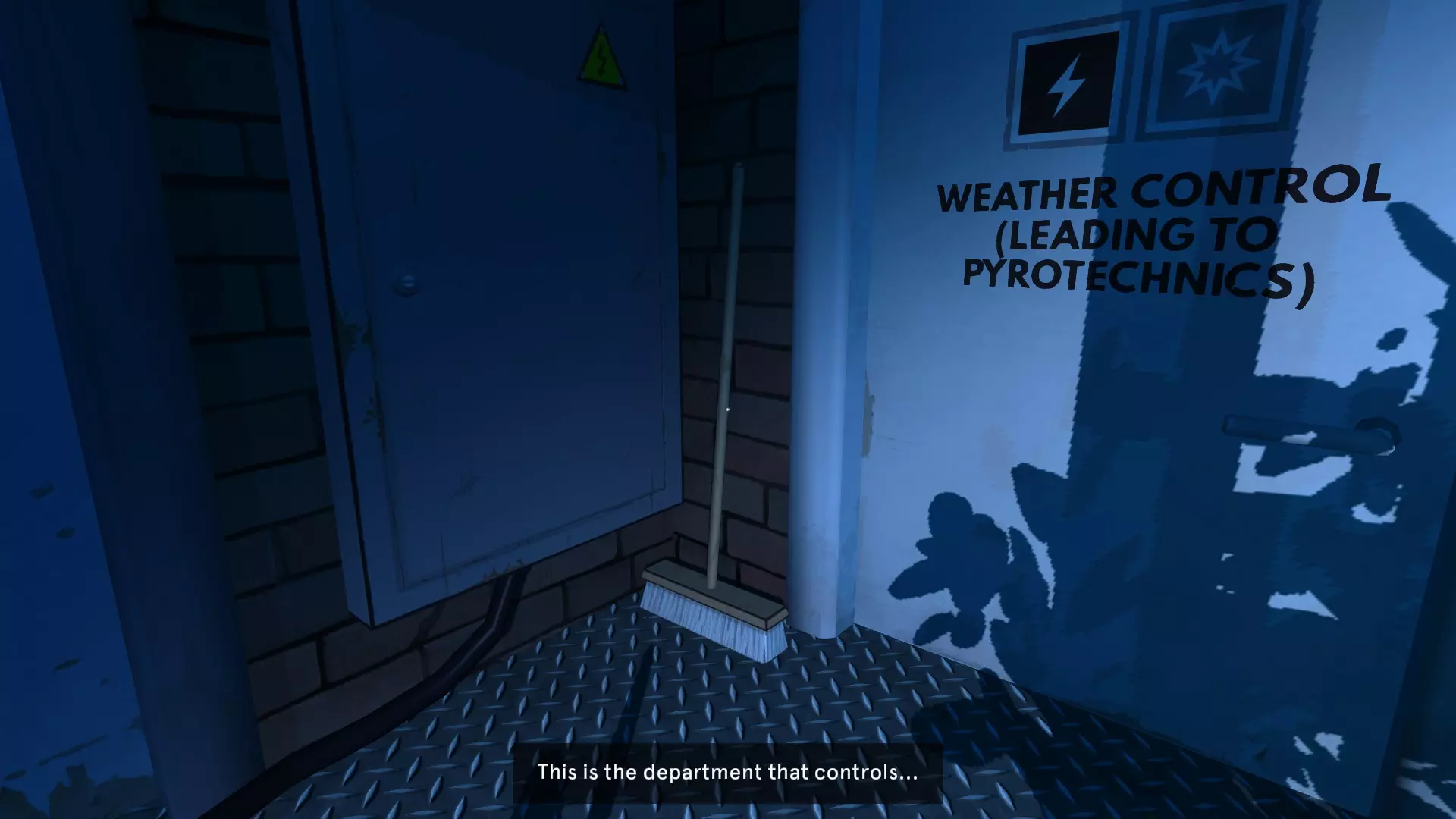 扫帚3 第三把也是最后一把扫帚位于杂物控制室底部的两扇门之间,你在落回天气控制室后会进入这个杂物控制室。