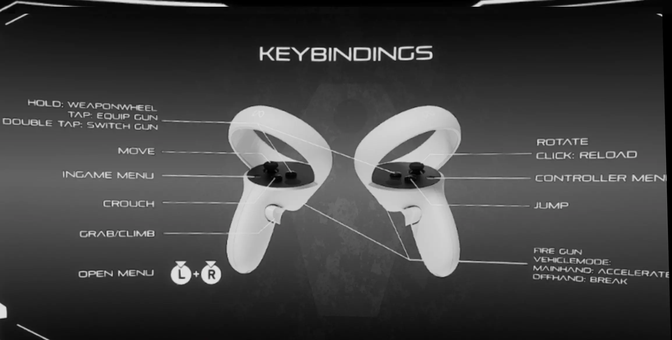 此部分显示您正在使用的控制器的按键绑定。根据玩家使用的设置,若为SteamVR或OpenXR,打开菜单的方式分别为同时按下两个摇杆,或按下左手控制器的菜单按钮。
