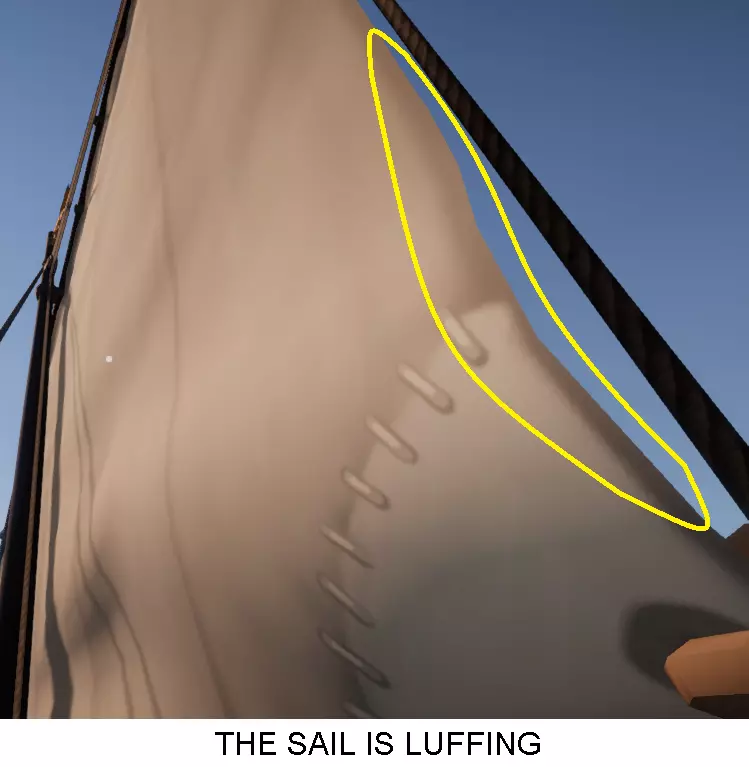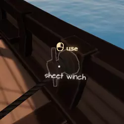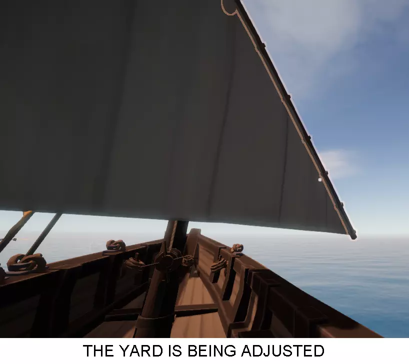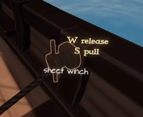 使用帆脚索绞盘将帆脚索完全放松(默认按鼠标左键+左Shift键)。当帆桁重新定位至迎风方向后,这一操作会很有帮助。