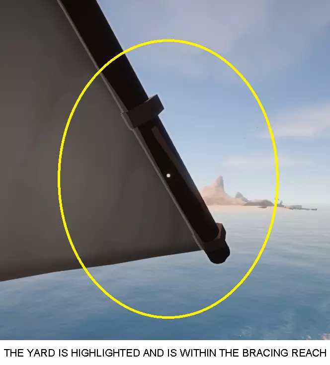 如果该操作不是在逆风情况下进行,那么帆索一定不要完全松开。相反,只需将其松开到足以让帆桁处于迎风位置即可。 步骤3:调整帆桁 帆索松开后,帆桁就可以转动以迎风了。 靠近帆桁的下端。当能够够到帆桁时,用户界面会将其高亮显示。
