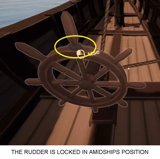 按住激活按钮(默认是鼠标左键)。然后移动到船尾区域,使自己相对于船头处于桅杆后方的位置。